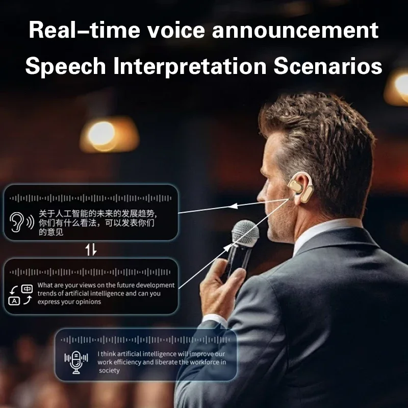 Auriculares de Traducción con IA Lenovo: Traducción de Voz en Tiempo Real, Inalámbricos, Estilo Gancho para la Oreja, 144 Idiomas, Ideales para Viajes y Deportes.