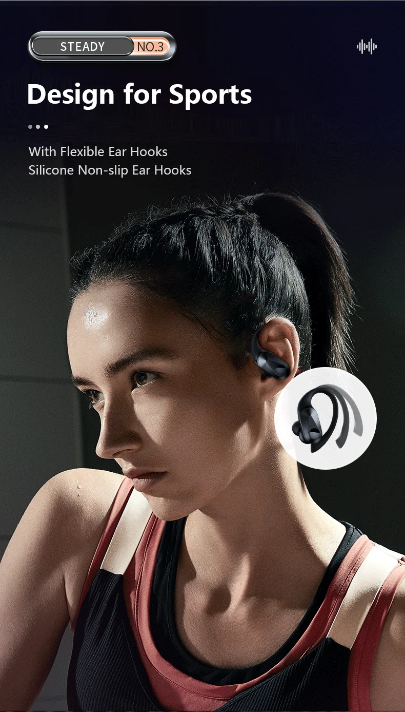 2.[Diseño deportivo/ganchos antideslizantes de silicona flexibles]: Diseñado para estilos de vida activos con ganchos de silicona seguros para las orejas que permanecen en su lugar durante los entrenamientos.