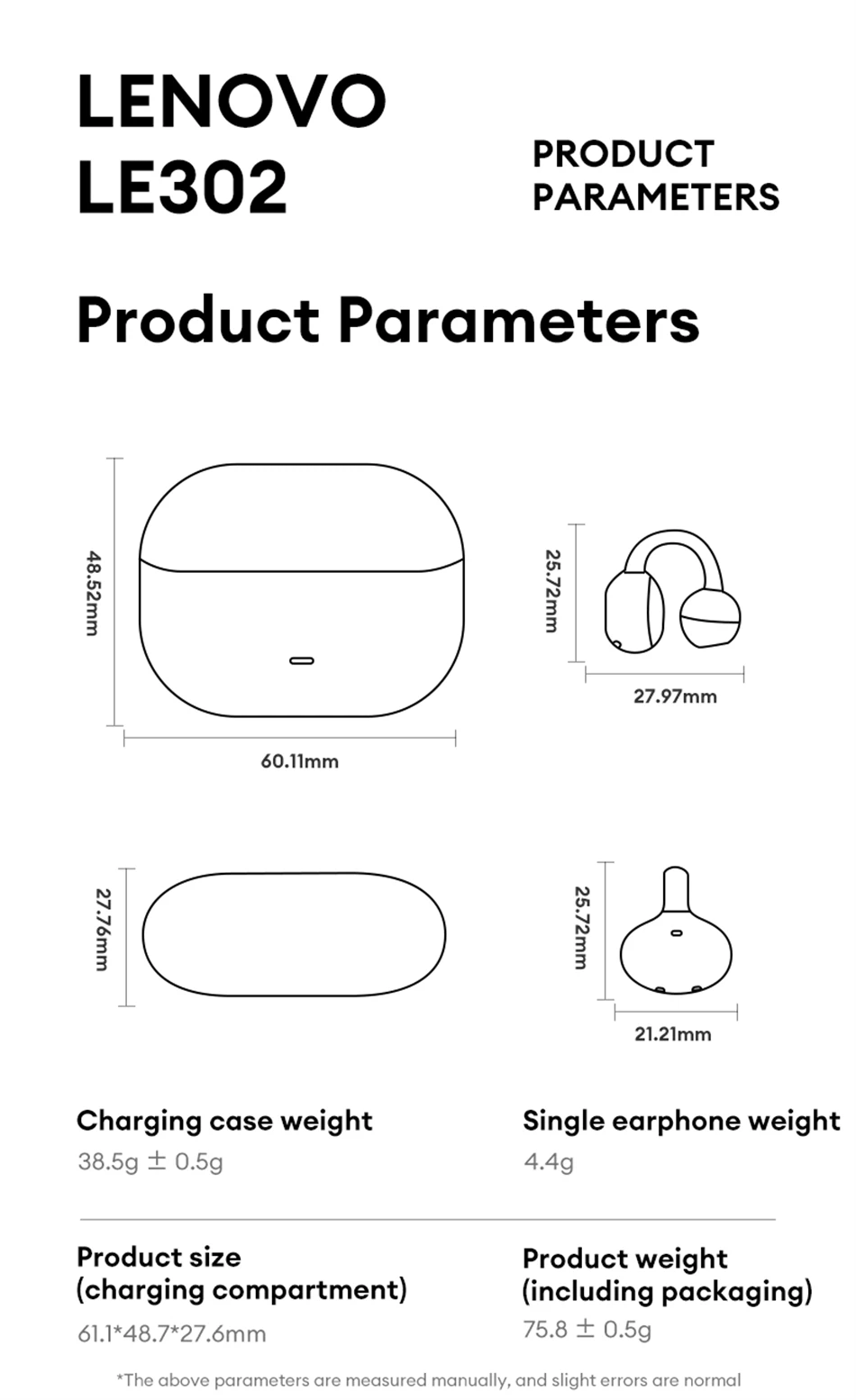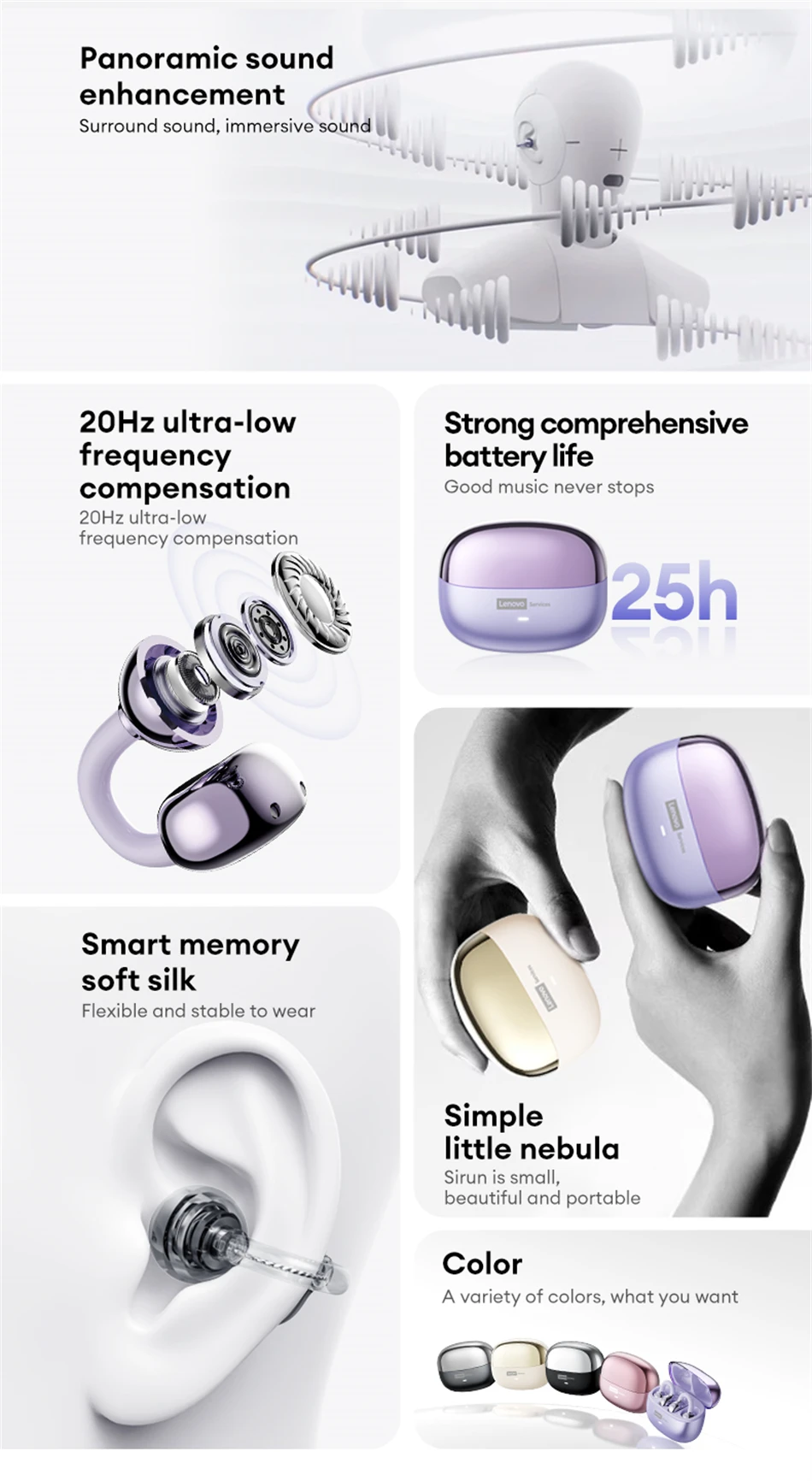 Nombre del producto: Auriculares Bluetooth Lenovo LE302 OWS con clip para la oreja