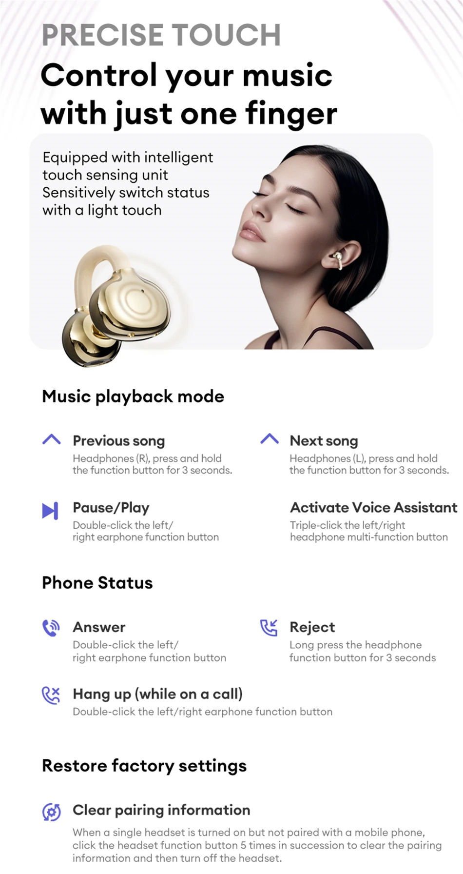 Inalámbrico Inteligente V6.0|Efectos de sonido panorámicos espaciales de alta definición. Nueva comodidad y nueva experiencia.