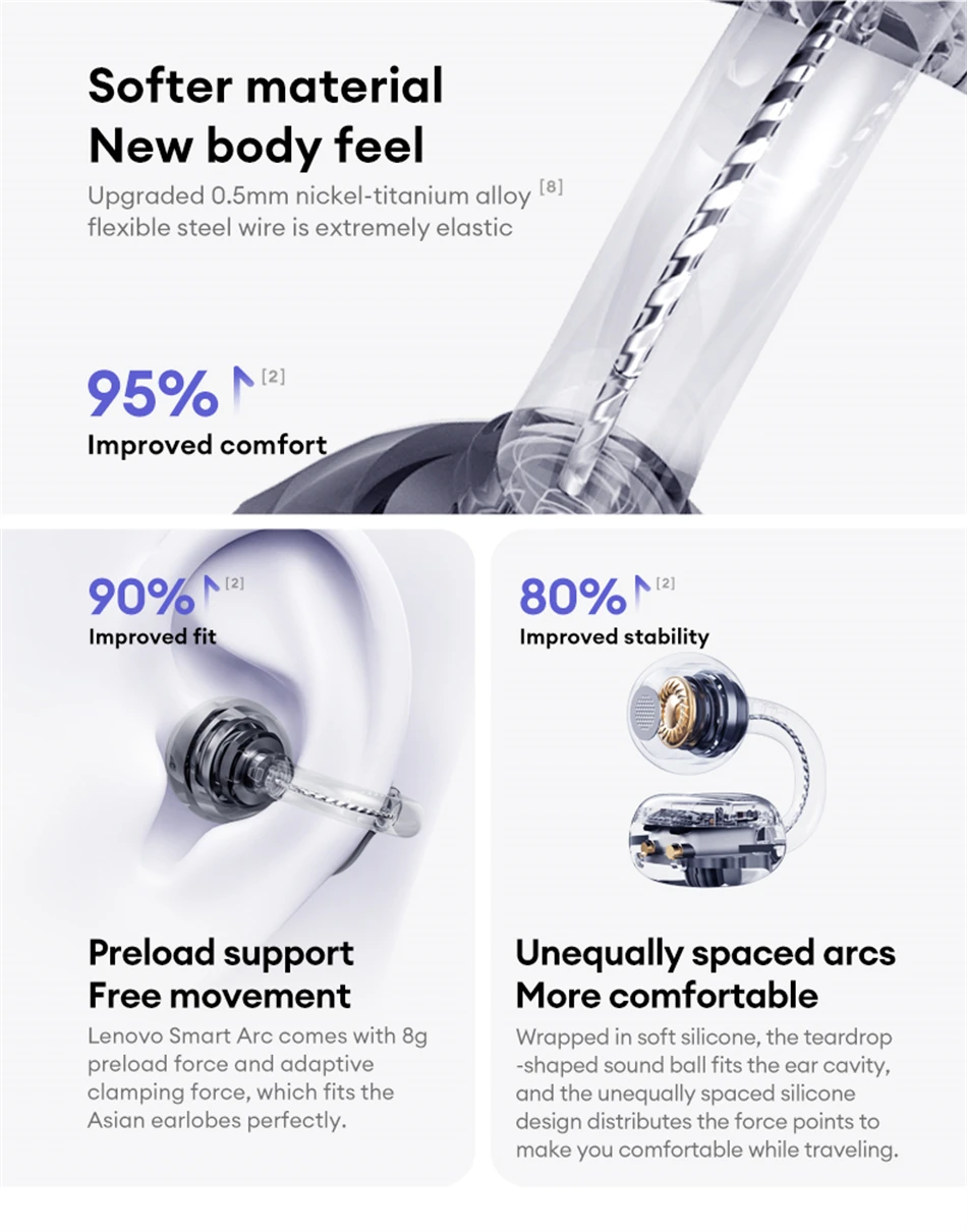 Desarrolla una nueva experiencia tecnológica cómoda. Sensación de ligereza, agradable al tacto y ajuste perfecto a las orejas.