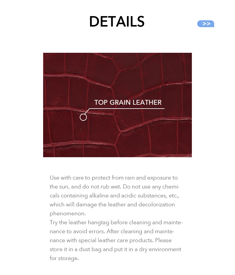 This bag is made of high-quality cowhide, the cowhide coating used is light and thin, the leather surface is entirely different from the artificial leather artificial processing properties, fully retains the original characteristics of leather, it doesn't defect, you can choose not to buy it if you mind the natural marks; at the same time, the natural cowhide's features make the leather have highly valued. Natural cowhide has better breathability, tactile toughness, and plasticity; they are used in the environmental craft; the products from this craft process are durable and have a specific collection value.