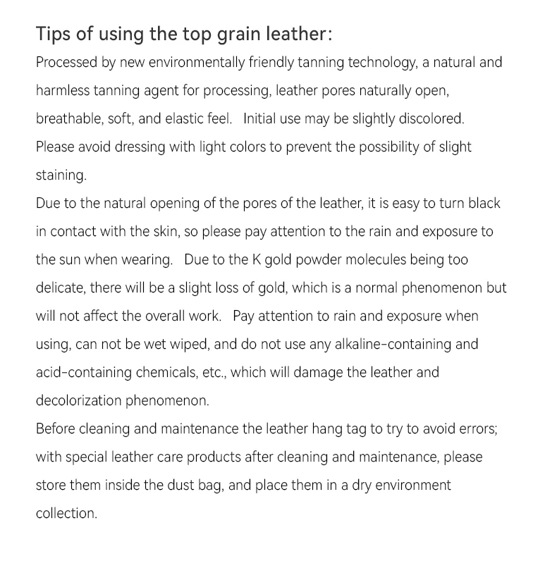 Esta bolsa está hecha de cuero de vaca de alta calidad, el recubrimiento de cuero de vaca utilizado es ligero y delgado, la superficie del cuero es completamente diferente de las propiedades de procesamiento de cuero artificial, conserva completamente las características originales del cuero, no presenta defectos, puede optar por no comprarlo si le importan las marcas naturales; Al mismo tiempo, las características del cuero natural de vaca hacen que el cuero sea muy valorado. El cuero de vaca natural tiene mejor transpirabilidad, dureza táctil y plasticidad; se utilizan en la artesanía ambiental; los productos de este proceso artesanal son duraderos y tienen un valor de recolección específico.