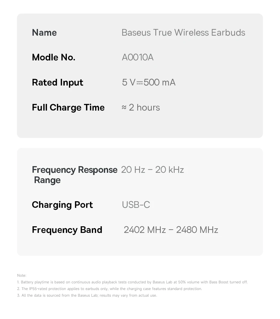 Name: Baseus Bass BS2 Lite True Wireless Earbuds