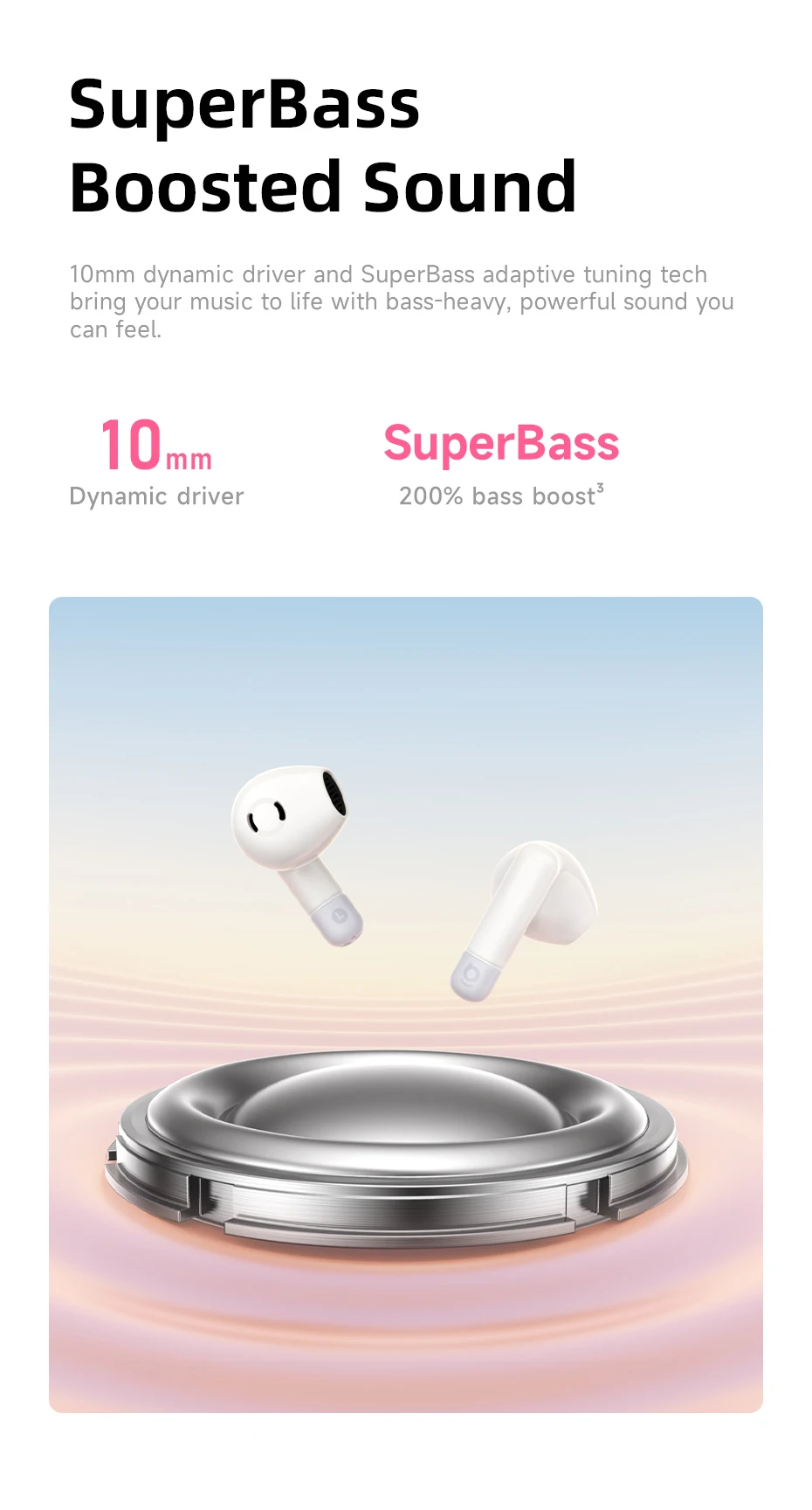 Controladores dinámicos de 10 mm con ajuste de graves adaptativo SuperBass que ofrecen hasta un 200%