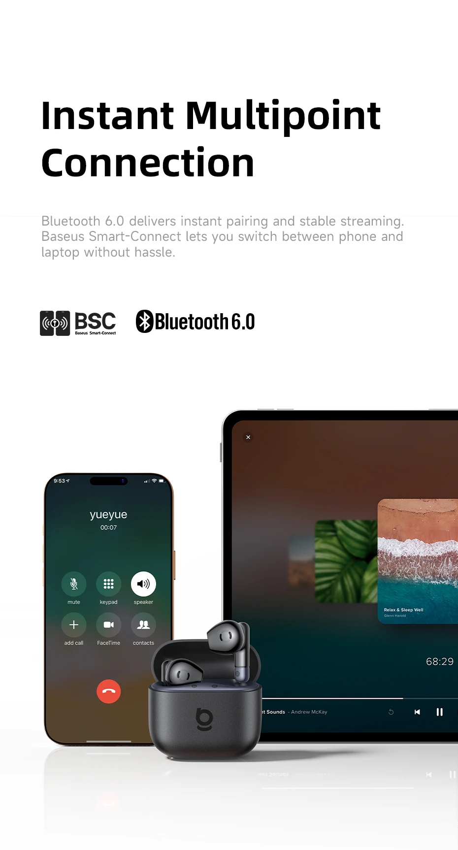 Bluetooth 6.0 ofrece emparejamiento instantáneo y transmisión estable.