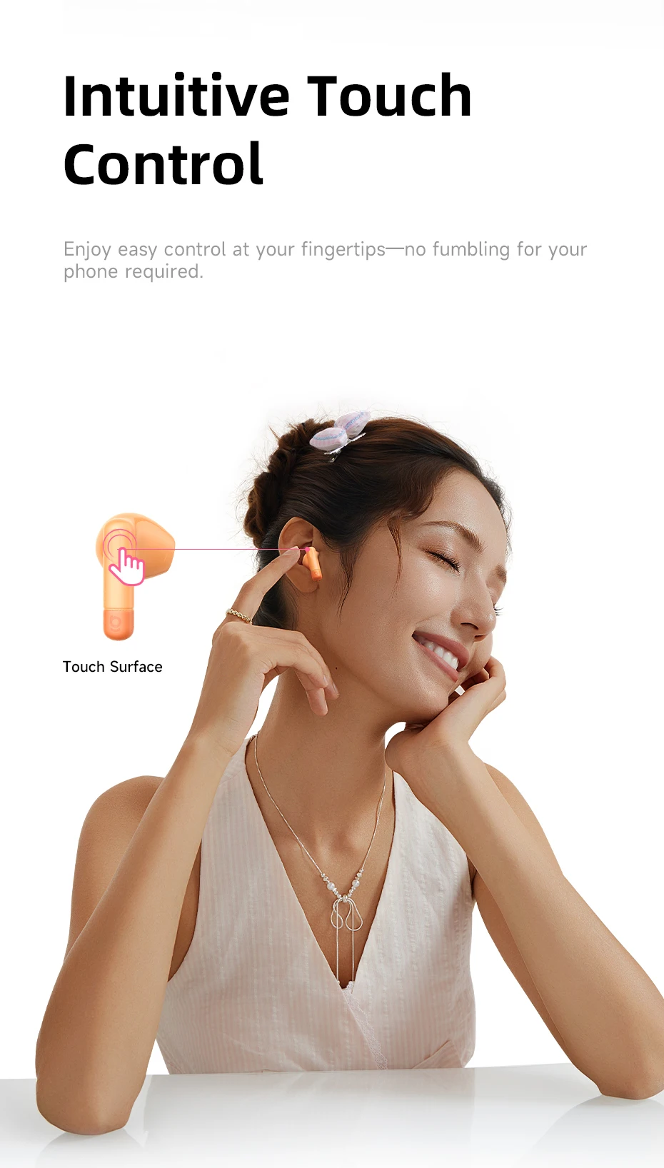 Ajuste ergonómico semi-in-ear y solo 3.3 g por auricular garantizan un uso cómodo durante todo el día.