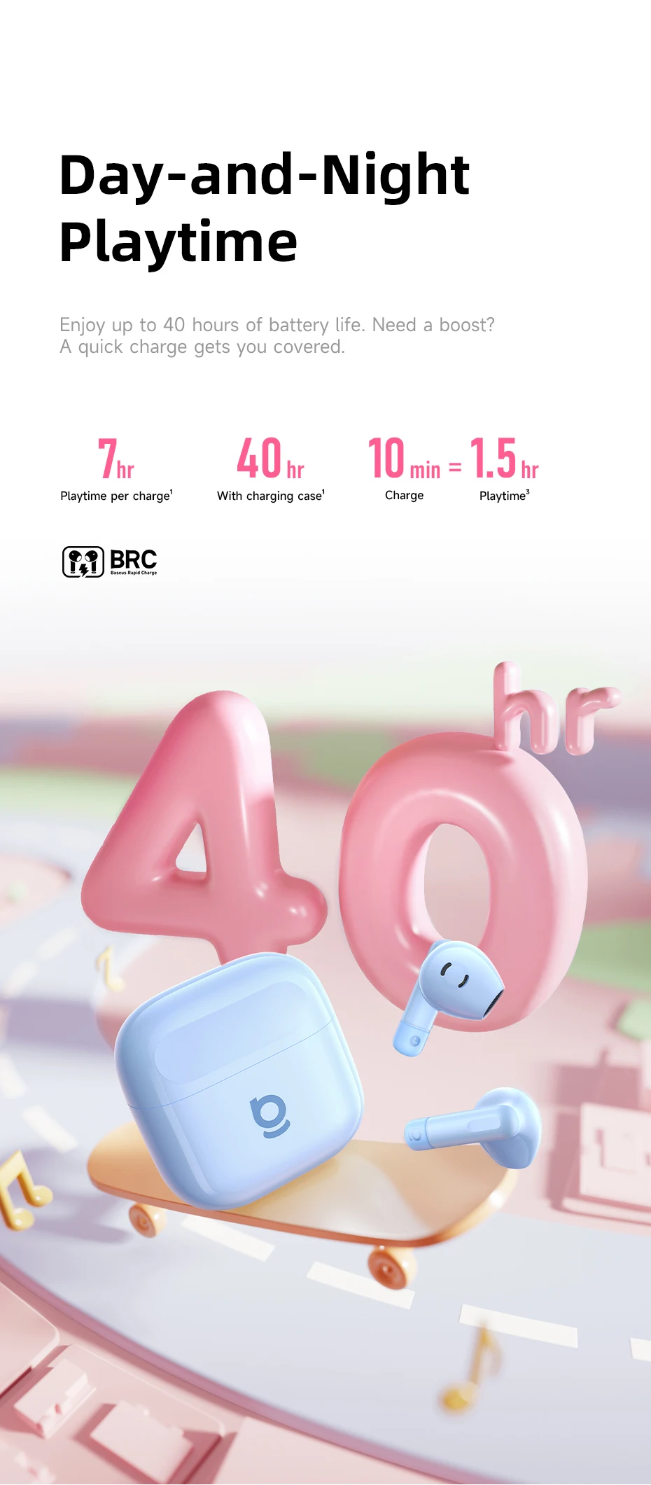 05?Disfruta de 7 horas por carga, extendidas a 40 horas con el estuche. ¿Necesitas un impulso?