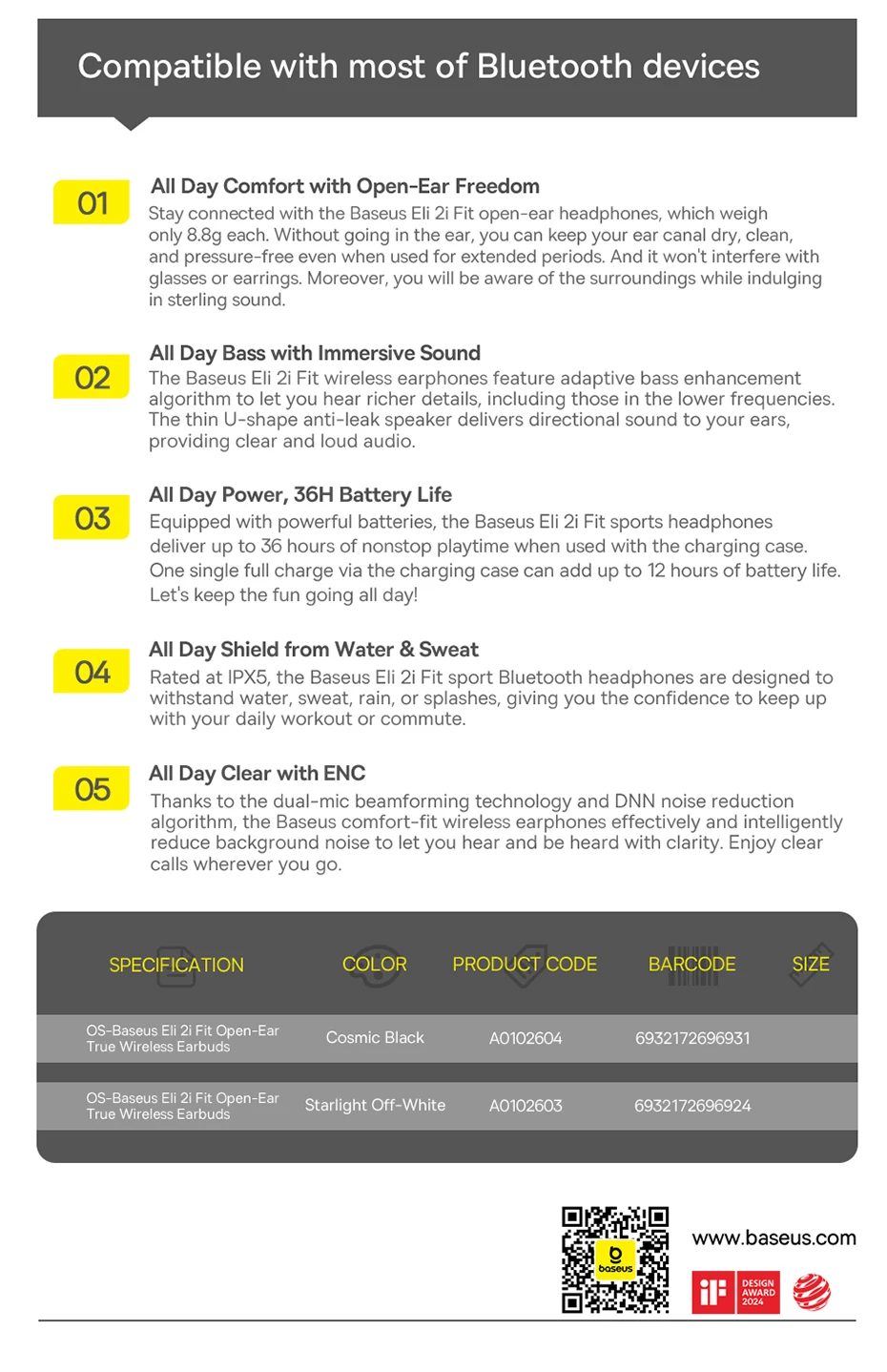 Auriculares Inalámbricos True Wireless de Oído Abierto Baseus Eli 2i Fit