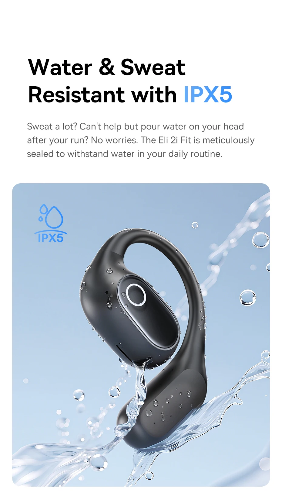 ¿Sudas mucho?¿Te pasa que te cae agua en la cabeza después de correr?No te preocupes.El Eli 2i Fit está meticulosamente sellado para resistir el agua en tu rutina diaria.