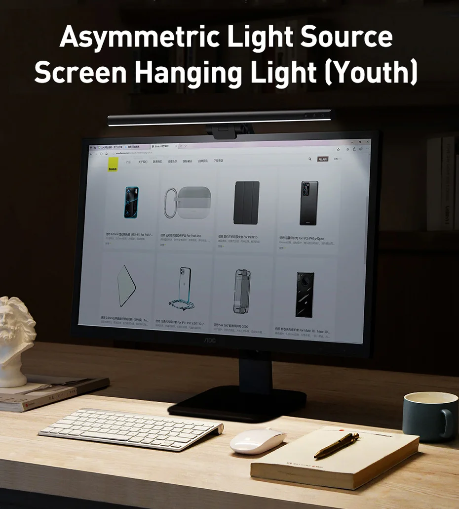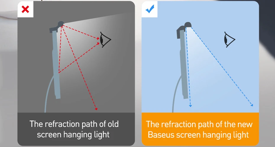 La lámpara colgante de pantalla Baseus i-wok adopta un diseño de fuente de luz asimétrica, ilumina el escritorio en lugar de la pantalla. Sin deslumbramiento, mejor protección ocular.