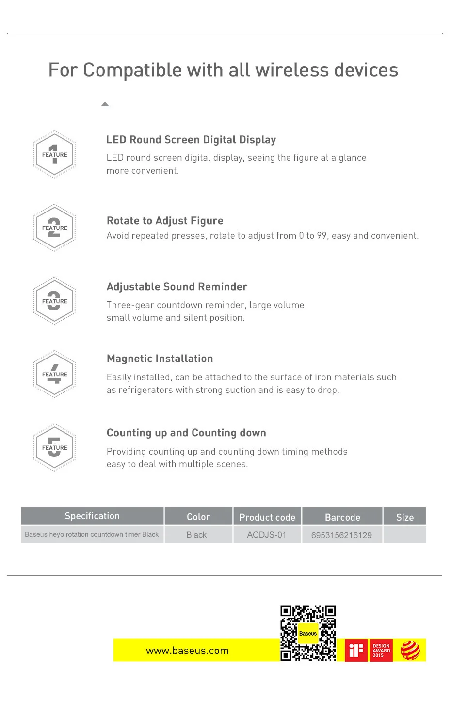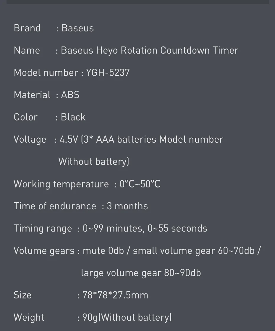 Product Model: Baseus Heyo Rotation Countdown Timer