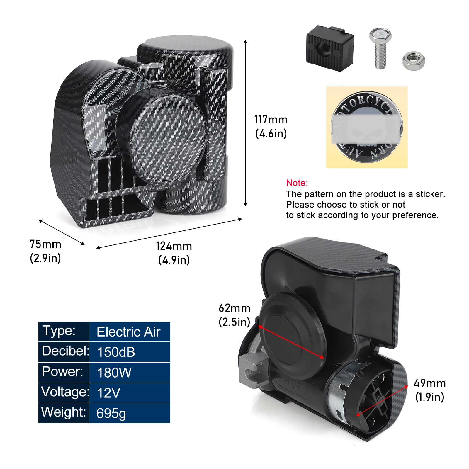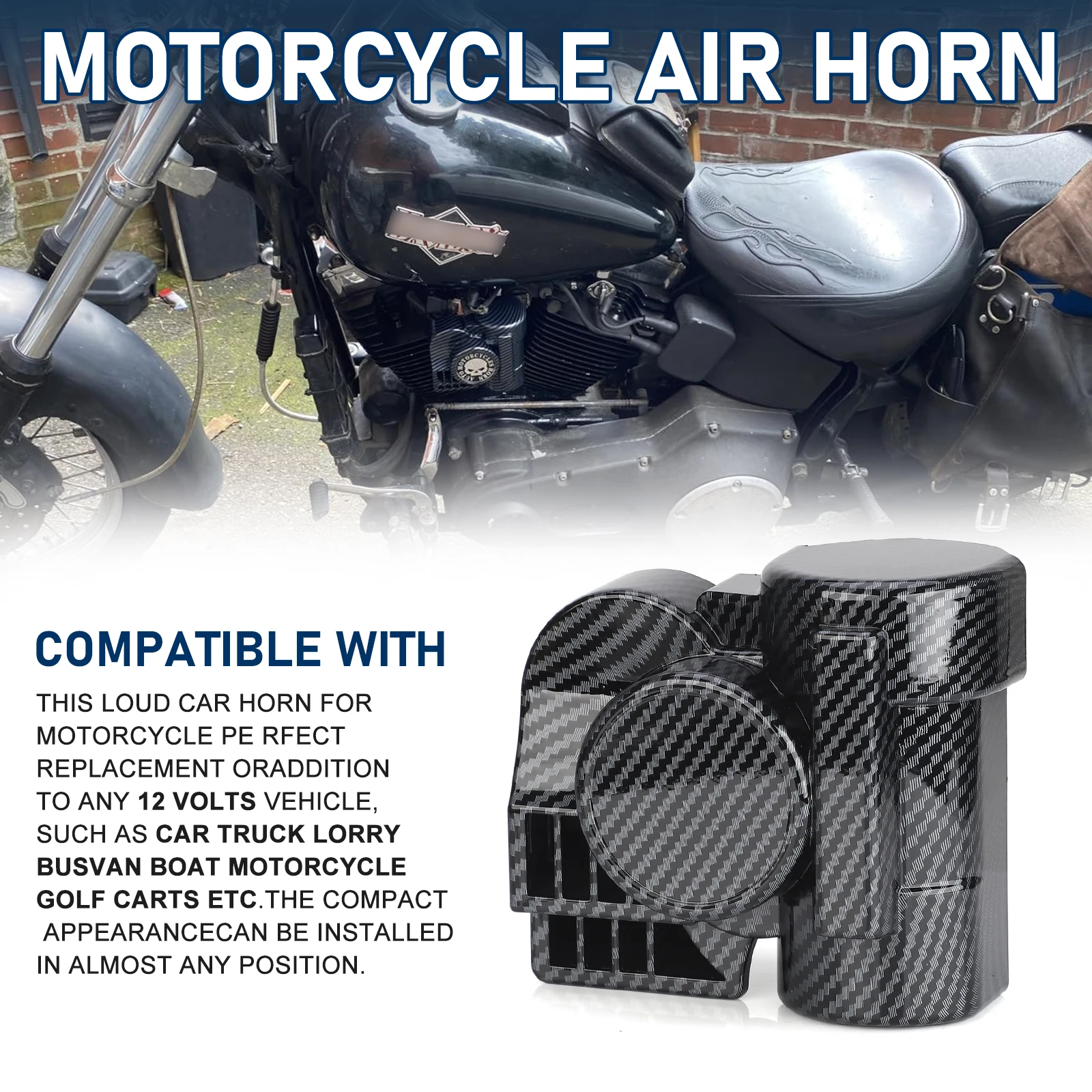 - La bocina es un reemplazo perfecto o un complemento para cualquier vehículo de 12 voltios, como motocicleta, automóvil, camión, autobús, furgoneta, barco, motocicleta, etc.