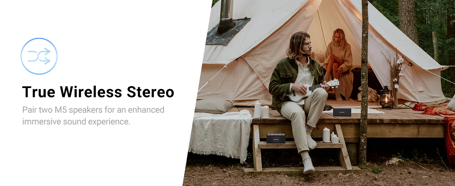El altavoz admite emparejamiento estéreo y duplica el volumen.Se puede lograr una experiencia de sonido envolvente de excelente calidad simplemente emparejando dos de nuestros parlantes.