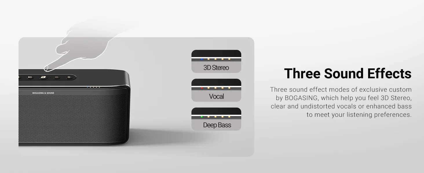 Encuentra la configuración de sonido ideal para tus oídos cambiando entre los modos vocal, super bass o estéreo 3D.