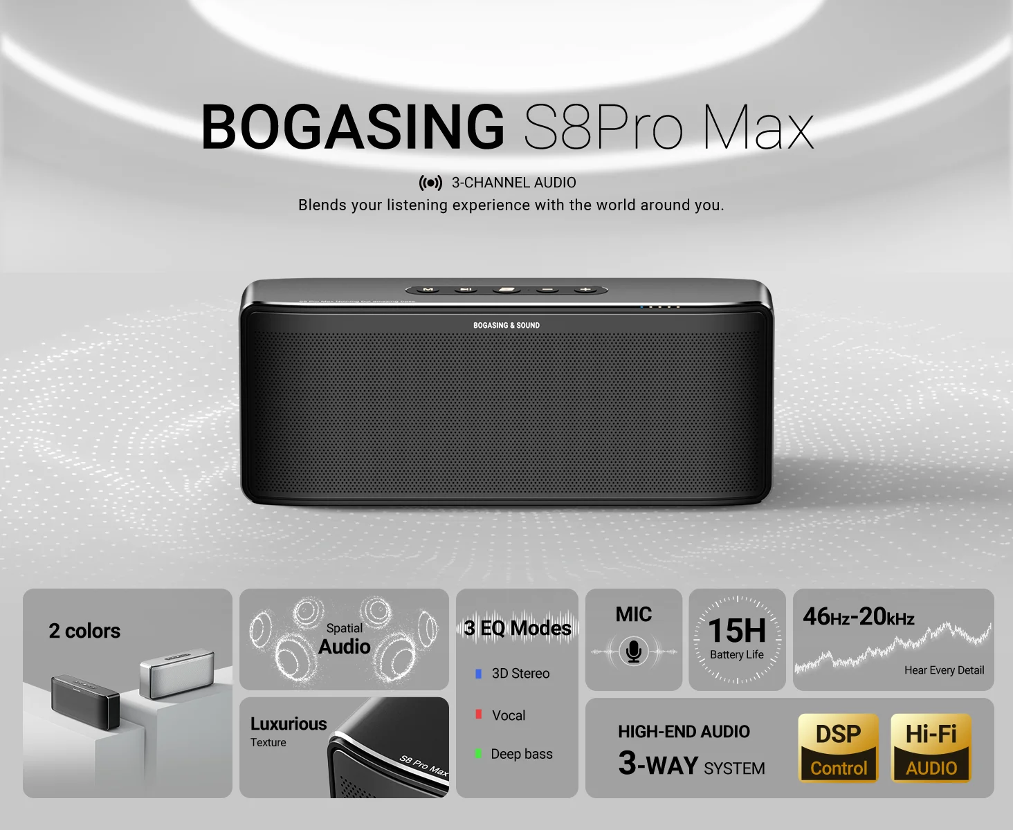 Elaborado en aluminio de alta calidad con increíble atención al detalle.El S8 PRO MAX luce tan bien como suena.