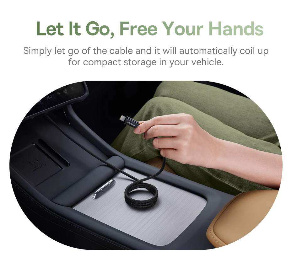 Simplemente suelte el cable y se enrollará automáticamente para un almacenamiento compacto en su vehículo.