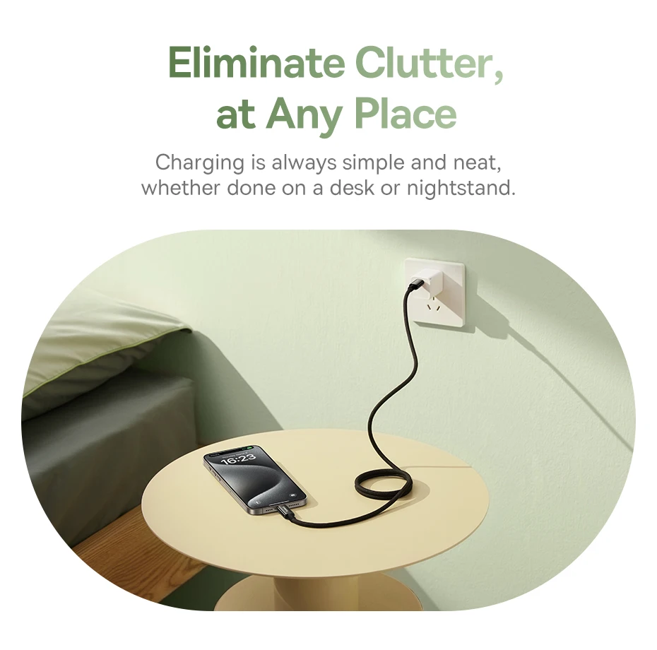 La carga es siempre sencilla y ordenada, ya sea en un escritorio o en una mesita de noche.