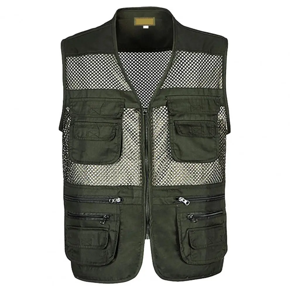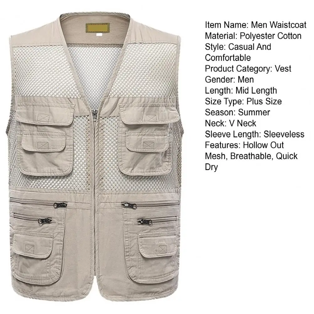 Summer Vest Thin Hollow Out Mesh Outdoor Sports Zipper Closure Jacket Sleeveless Waistcoat Casual Lightweight Work Wear Camping Fishing Waistcoat