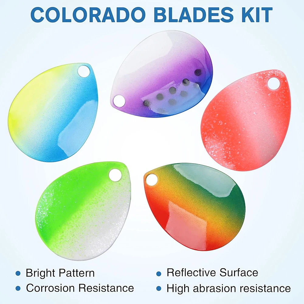 ?HAGA TUS PROPAS SEÑAS? El kit de cuchillas giratorias de pesca es una parte necesaria para hacer su propio spinner, aparejos walleye o plantillas.También es una excelente manera de actualizar los señuelos antiguos.El kit de fabricación de señuelos con cuchillas colorado dará vida a sus señuelos y hará que la pesca sea más divertida.