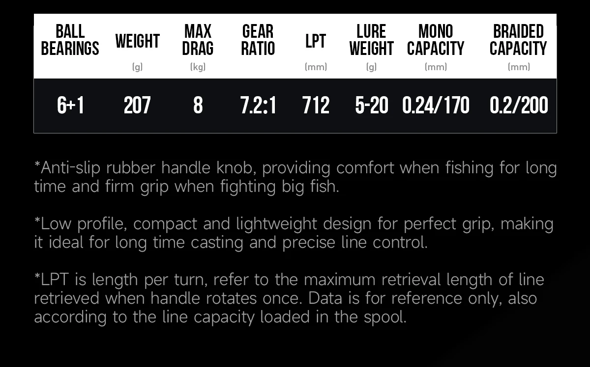 ?Peso del Baitcaster: 207G