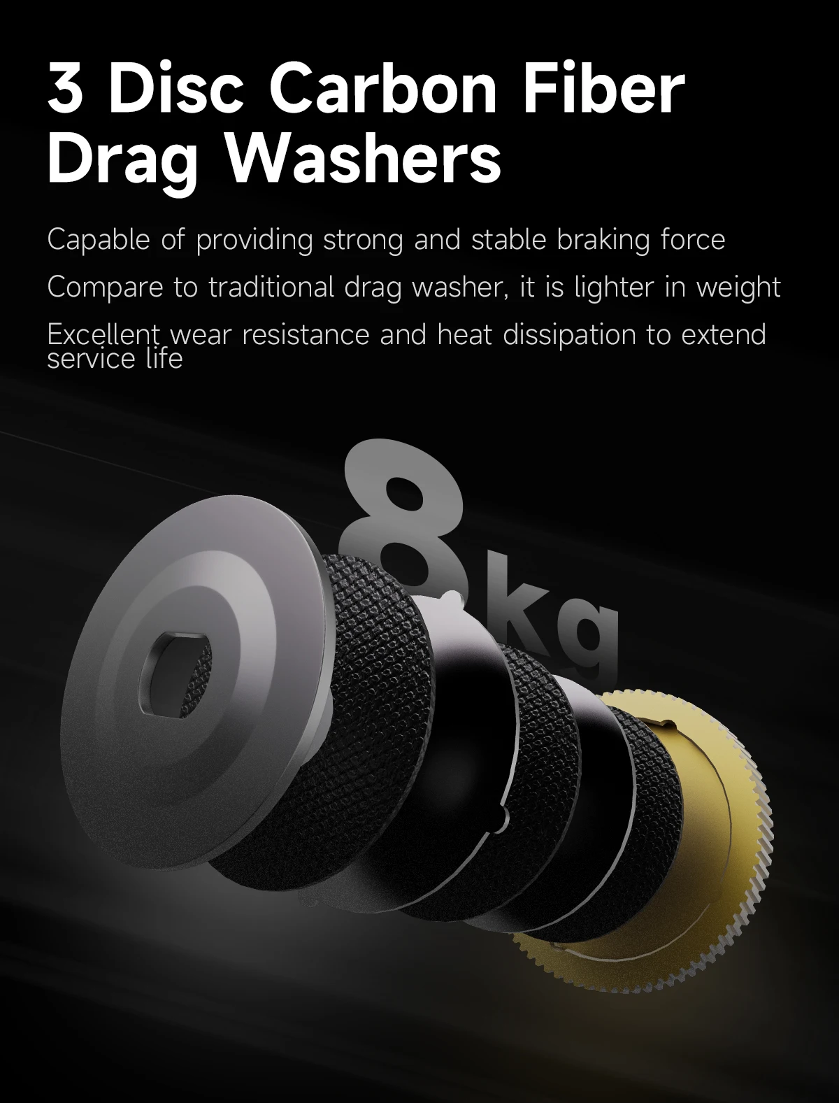 ? 3 Arandelas de Fricción de Fibra de Carbono ofrecen una Fricción Máxima de 8KG.