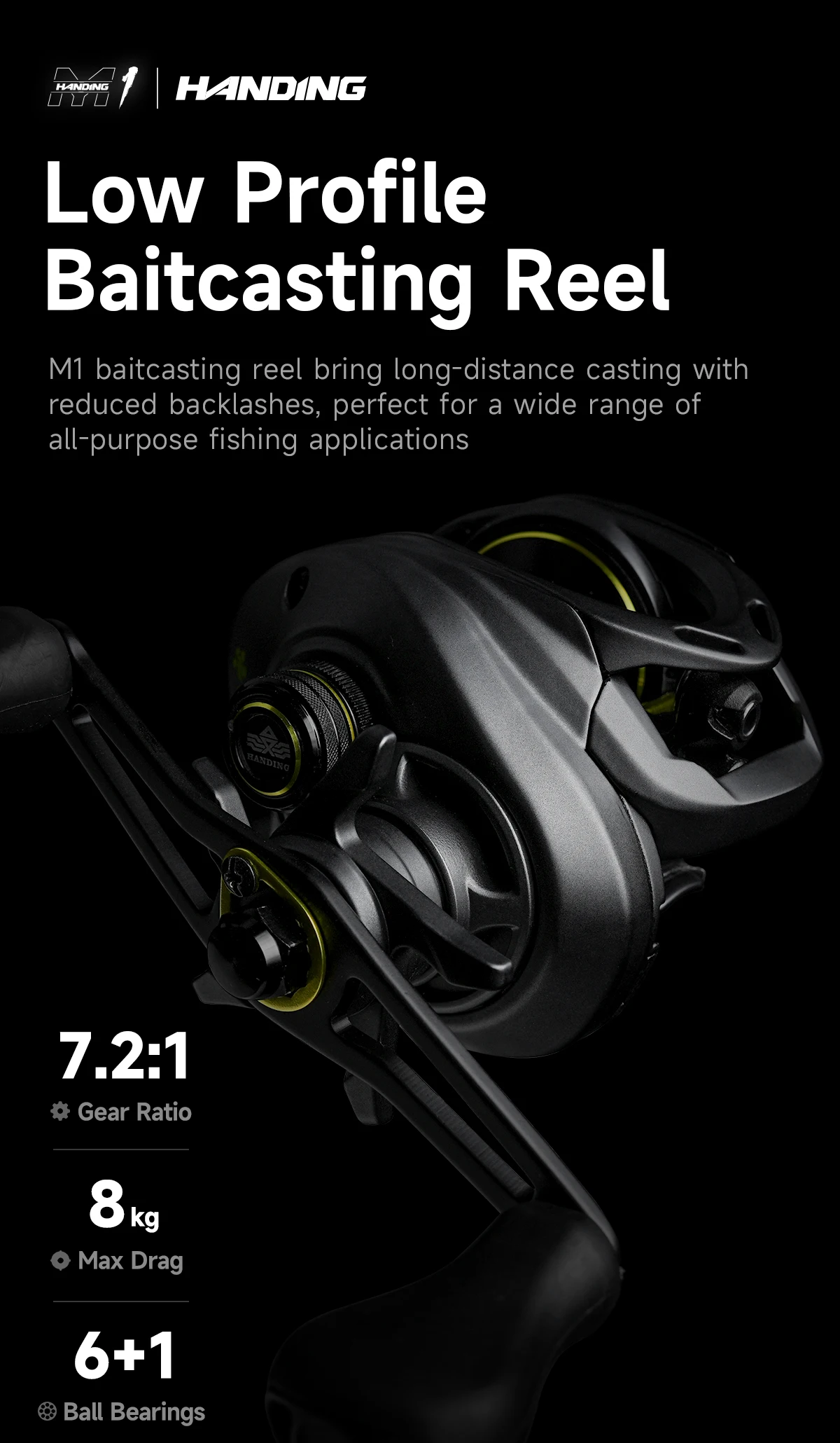 El carrete de baitcasting M1 es ideal para todo tipo de pesca, ya sea en océanos, lagos, embalses, estanques o arroyos. Su fabricación de precisión garantiza un rendimiento exacto.