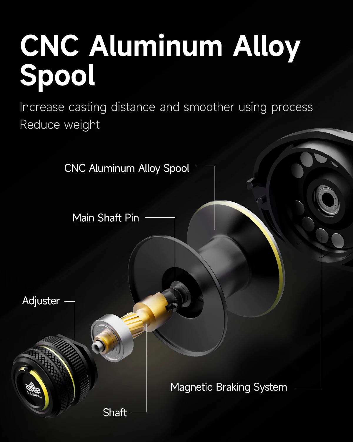 El carrete de pesca M1 Baitcasting permite ajustar eficazmente los frenos y la tensión del carrete gracias a un sistema de frenado magnético de 10 niveles con 30 pines y 8 imanes.