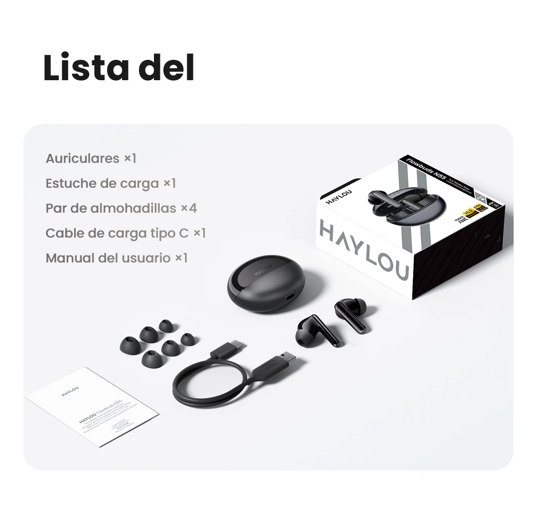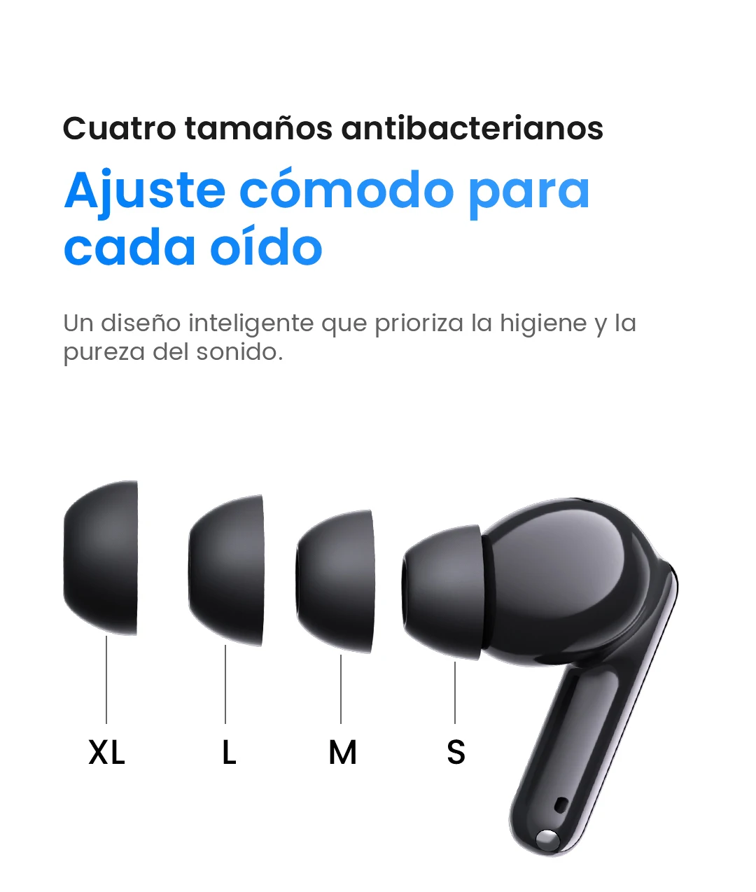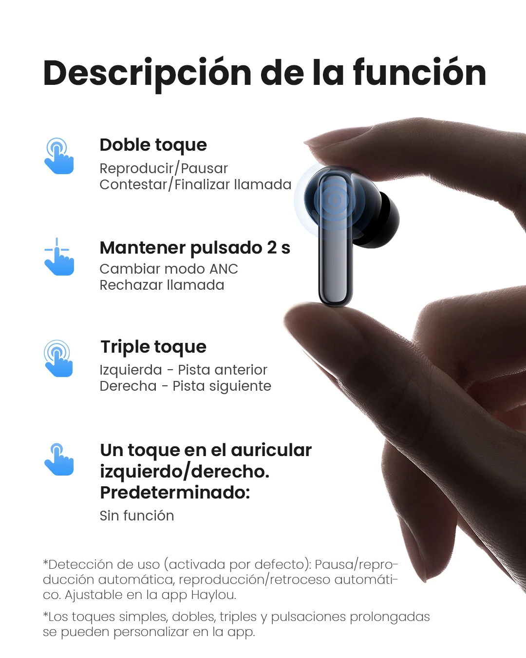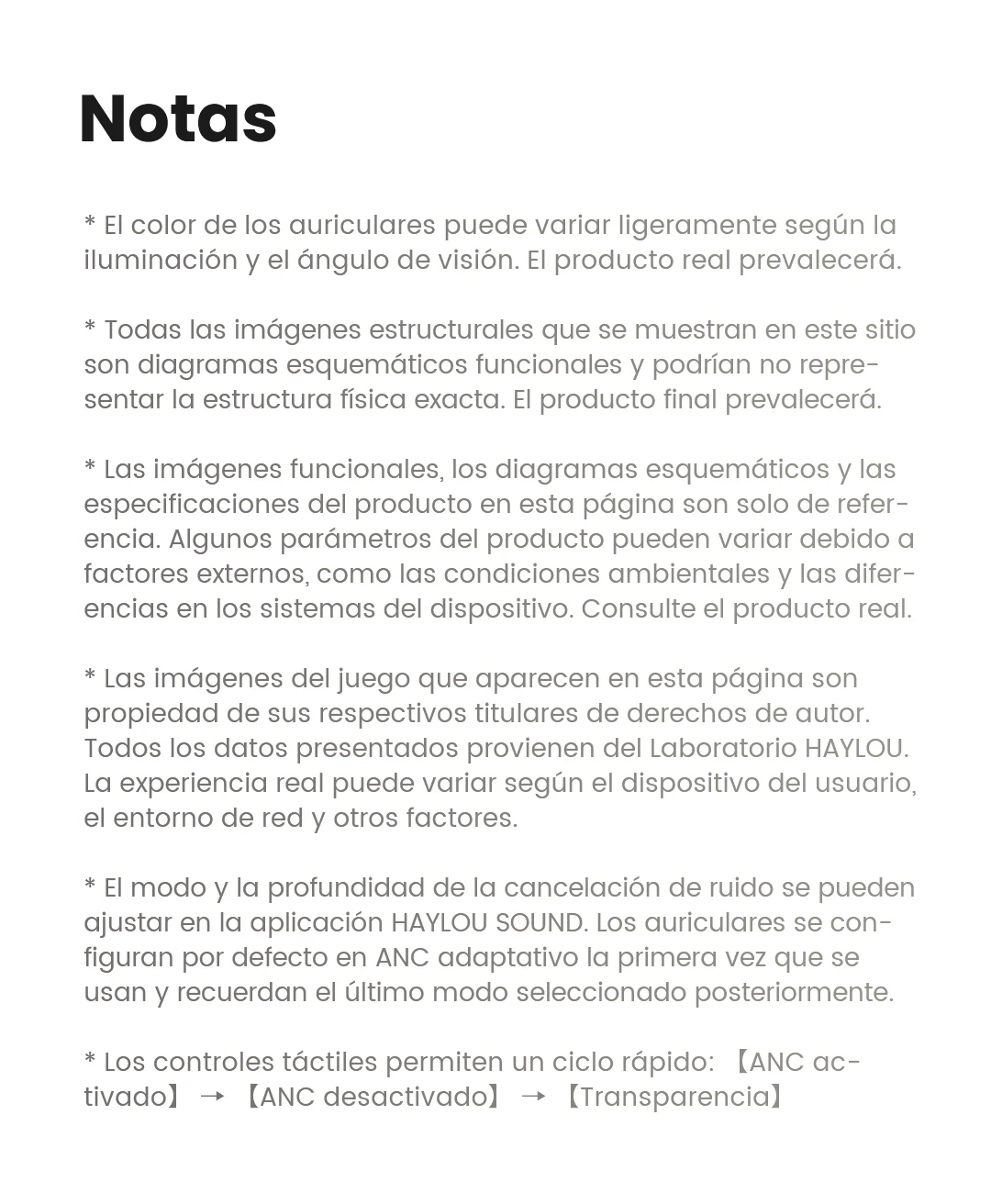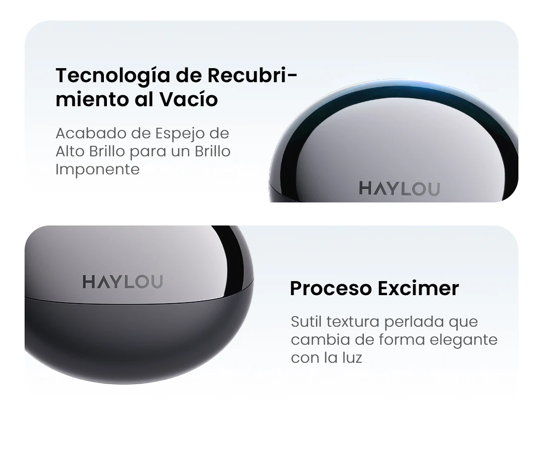 Certificación LDAC y Hi-Res Wireless: Equipado con un controlador dinámico recubierto de titanio de 12,4 mm y un algoritmo de mejora de graves transitorios, que ofrece detalles precisos de alta y baja frecuencia.Los agudos son claros y aireados, como una presentación en vivo, mientras que los graves son potentes y profundamente extendidos, ofreciendo una experiencia musical y multimedia inmersiva en cualquier momento y lugar.Cancelación de ruido adaptativa de 54 dB: HAYLOU Flowbuds N55 Cancelación activa de ruido de banda ultraancha de hasta -54 dB con detección del entorno del canal auditivo.Escanea continuamente el microambiente interno del auricular (calidad del sellado, cambios de presión de aire), optimizando dinámicamente los parámetros de cancelación activa de ruido (ANC) para ambos oídos.Desde el ruido del metro hasta el zumbido del teclado de la oficina, actúa como un "vacío de ondas sonoras", creando una zona de silencio dedicada para escuchar música pura y trabajar con concentración.