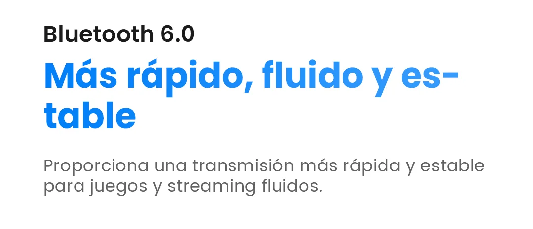 Conexión estable, menor latencia, mejor experiencia: La última tecnología Bluetooth 6.0 permite una transmisión más rápida y conexiones más estables con antiinterferencias de hasta 30 m. Fácilmente compatible con smartphones, tablets, laptops y más.