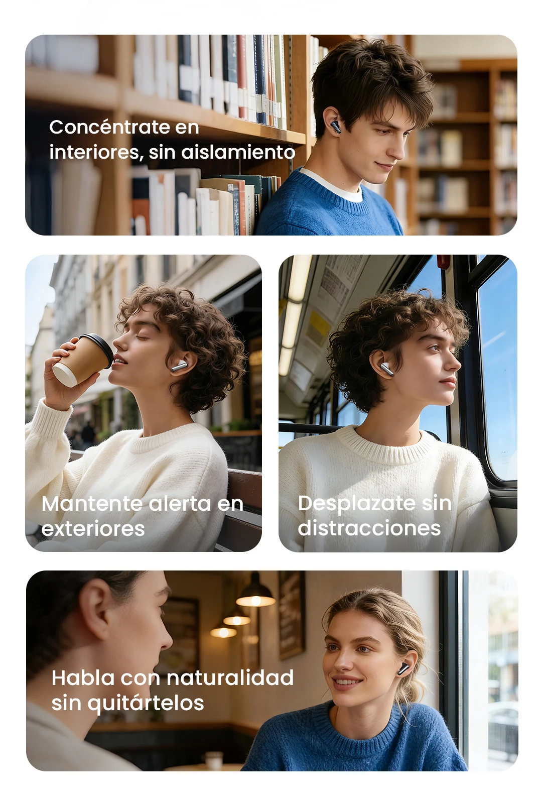 Detección Inteligente de Ropa: Tuto-play al usarlo y pausa automática al retirarlo.Detecta el estado de uso de forma inteligente, lo que permite que la música se reanude al instante durante los entrenamientos, sin esfuerzo y con bajo consumo de energía.