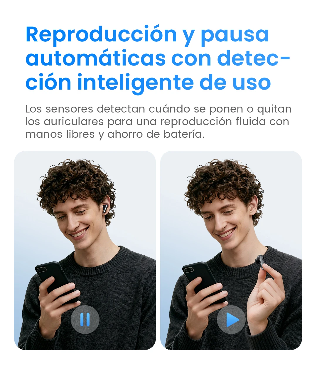 Los sensores detectan cuándo los auriculares están dentro o fuera para una reproducción manos libres y sin interrupciones, además de ahorrar batería.
