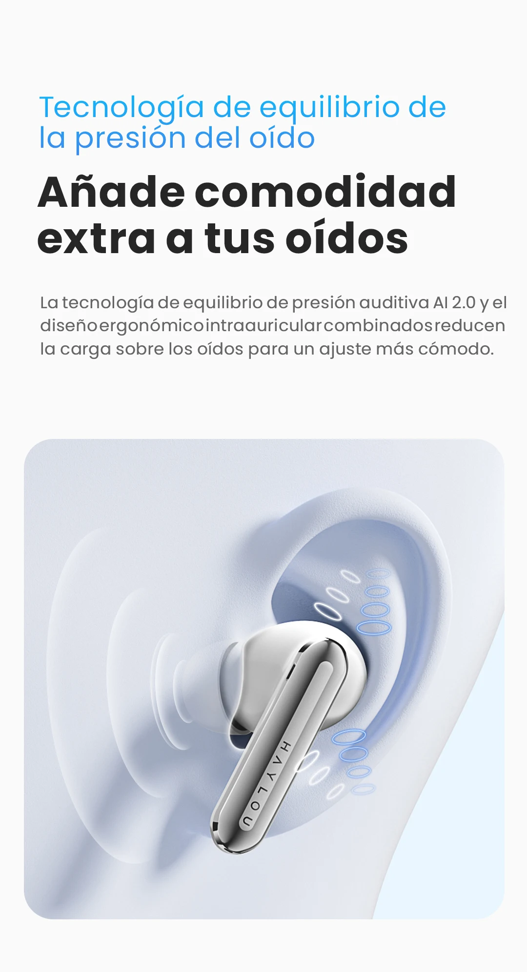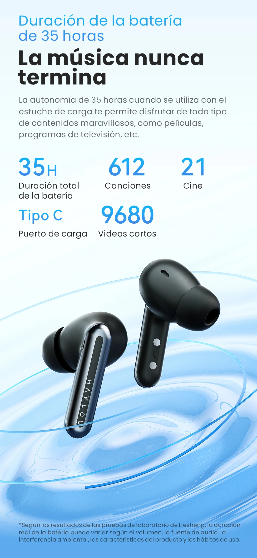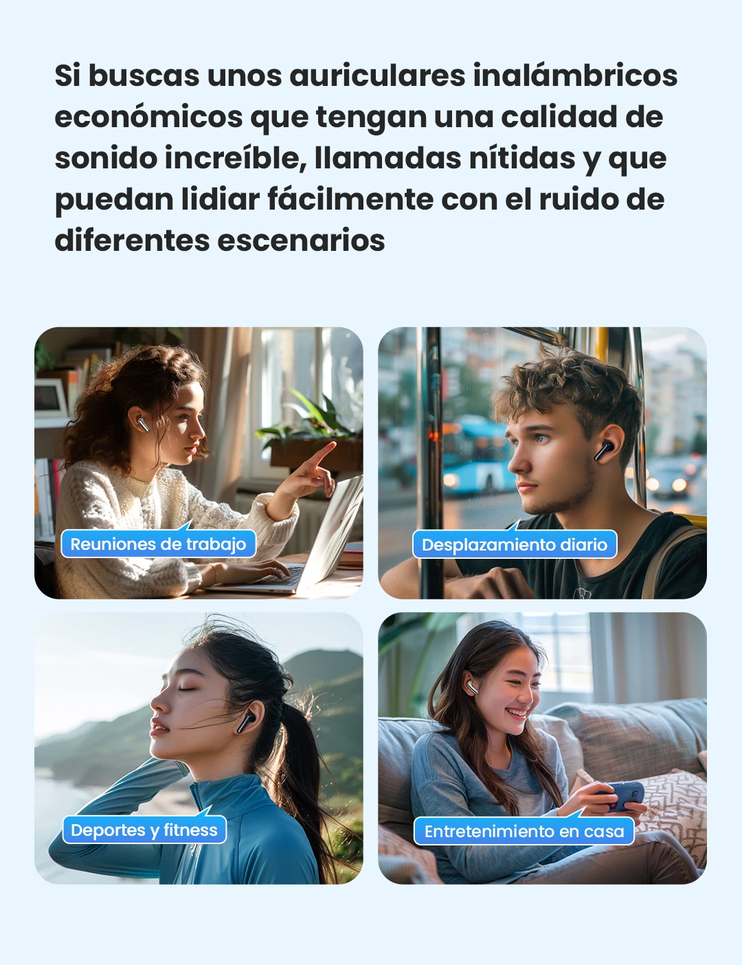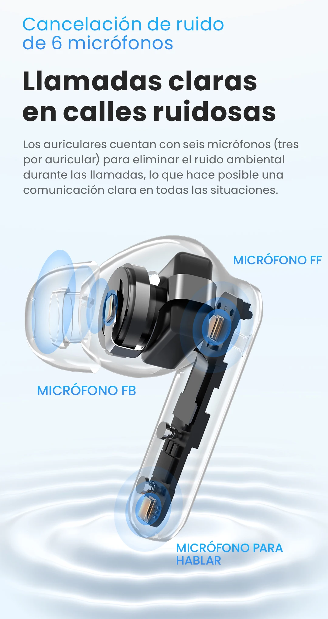 -43dB AI ANC ?Cancelación de ruido de 6 micrófonos?Cancelación de ruido de llamadas AI?Reducción de ruido por viento.