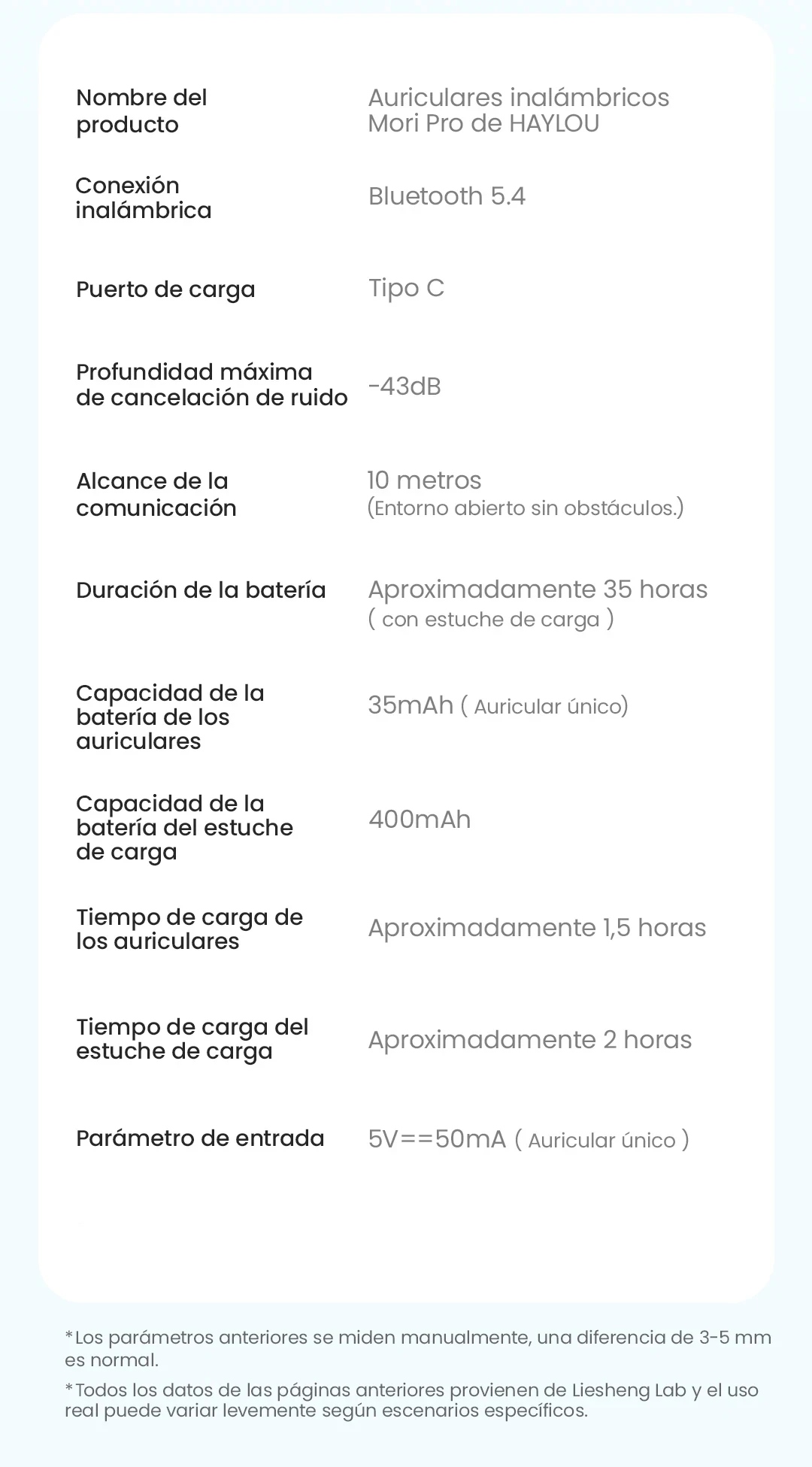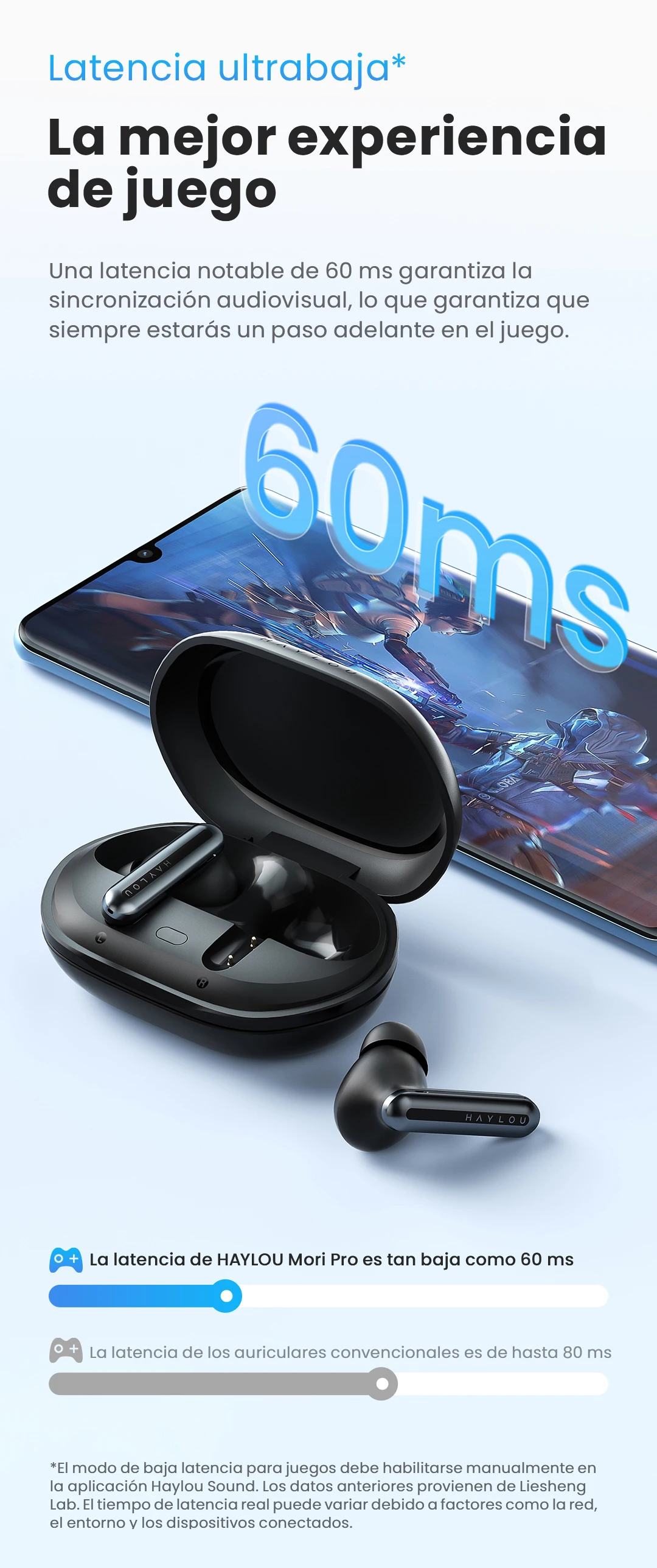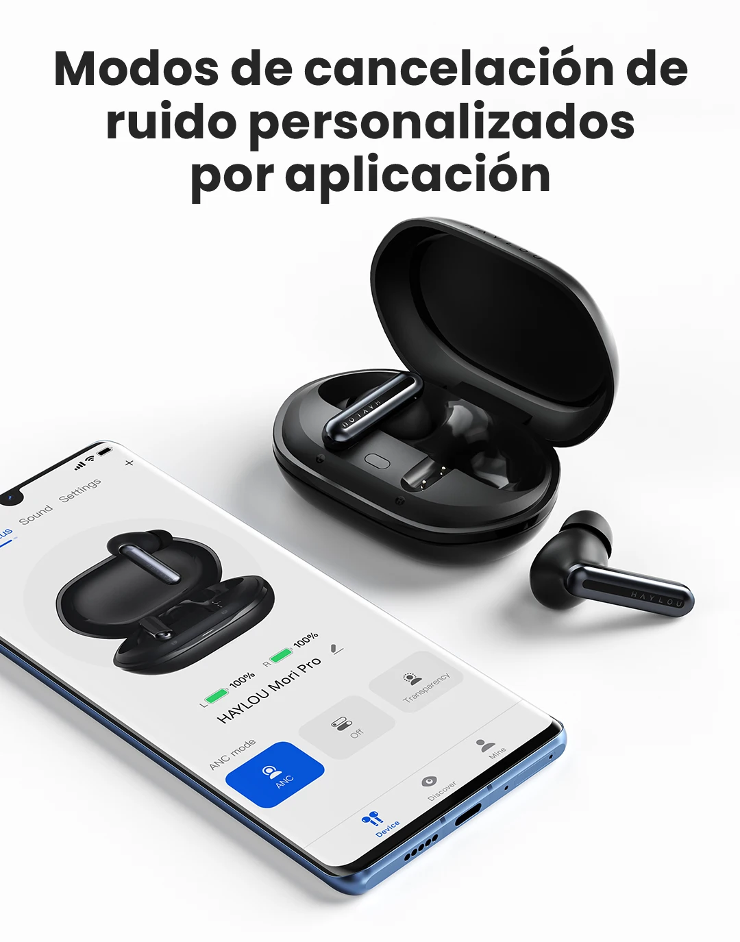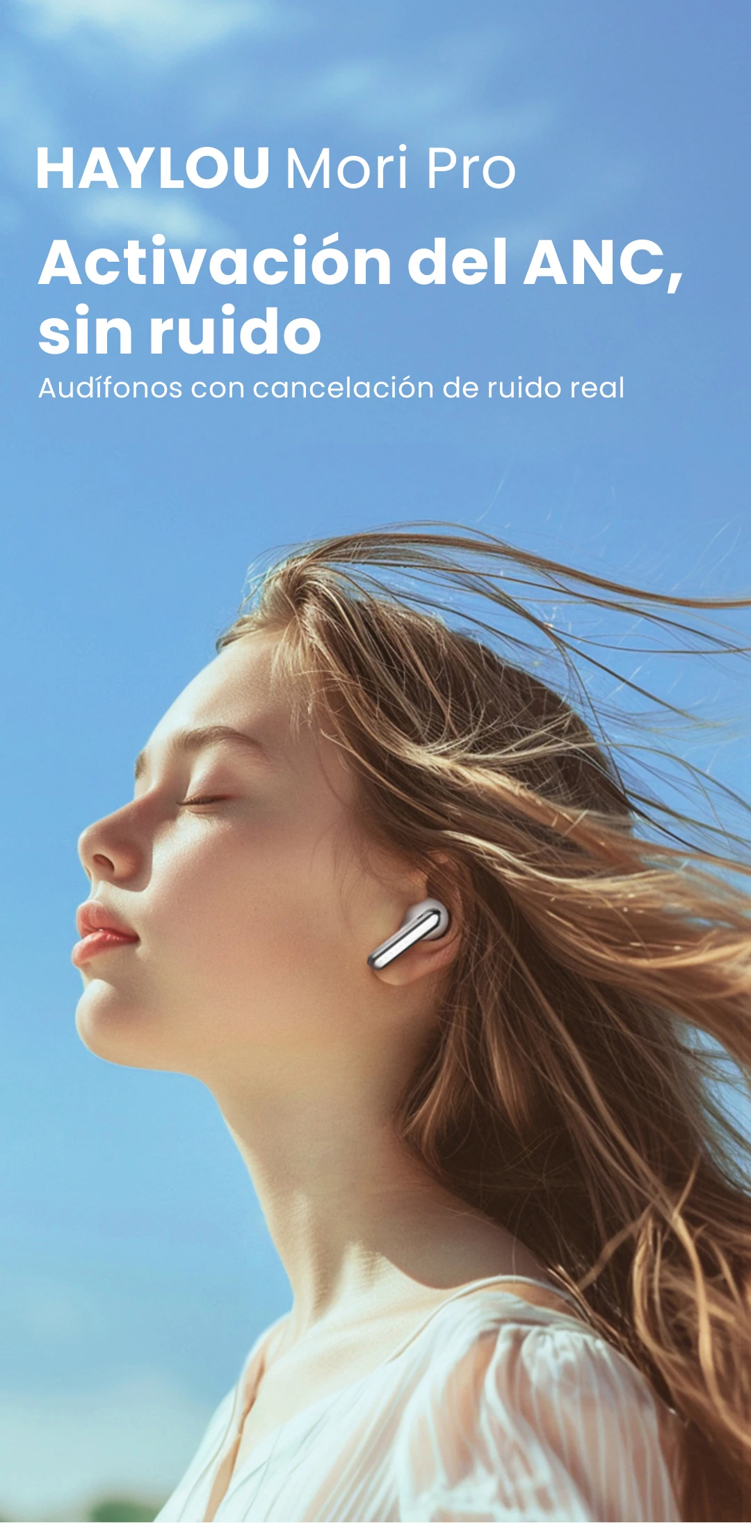 Cancelación activa de ruido híbrido adaptativo: Los auriculares con cancelación de ruido HAYLOU Mori Pro vienen equipados con cancelación activa de ruido adaptativa (ANC) que se adapta de manera inteligente a su entorno, asegurando que el ruido ambiental se elimine de manera efectiva. El diseño también incorpora 6 micrófonos y resistencia al ruido del viento, lo que los hace ideales para actividades al aire libre y aventuras en movimiento.