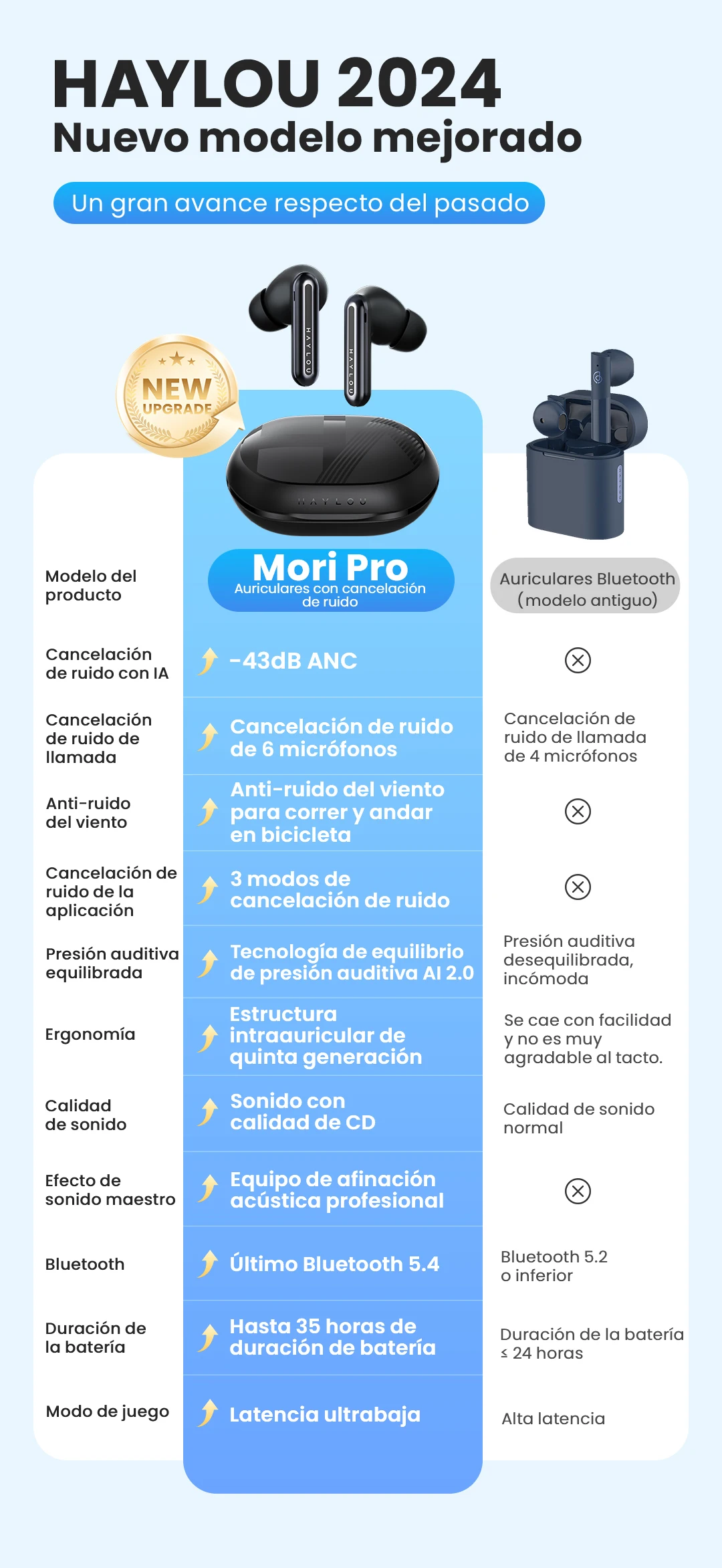 HAYLOU Mori Pro Bluetooth 5,4 Auriculares-43dB ANC Cancelación activa de ruido Auriculares 6 Mic Auriculares inalámbricos 35H Duración de la batería