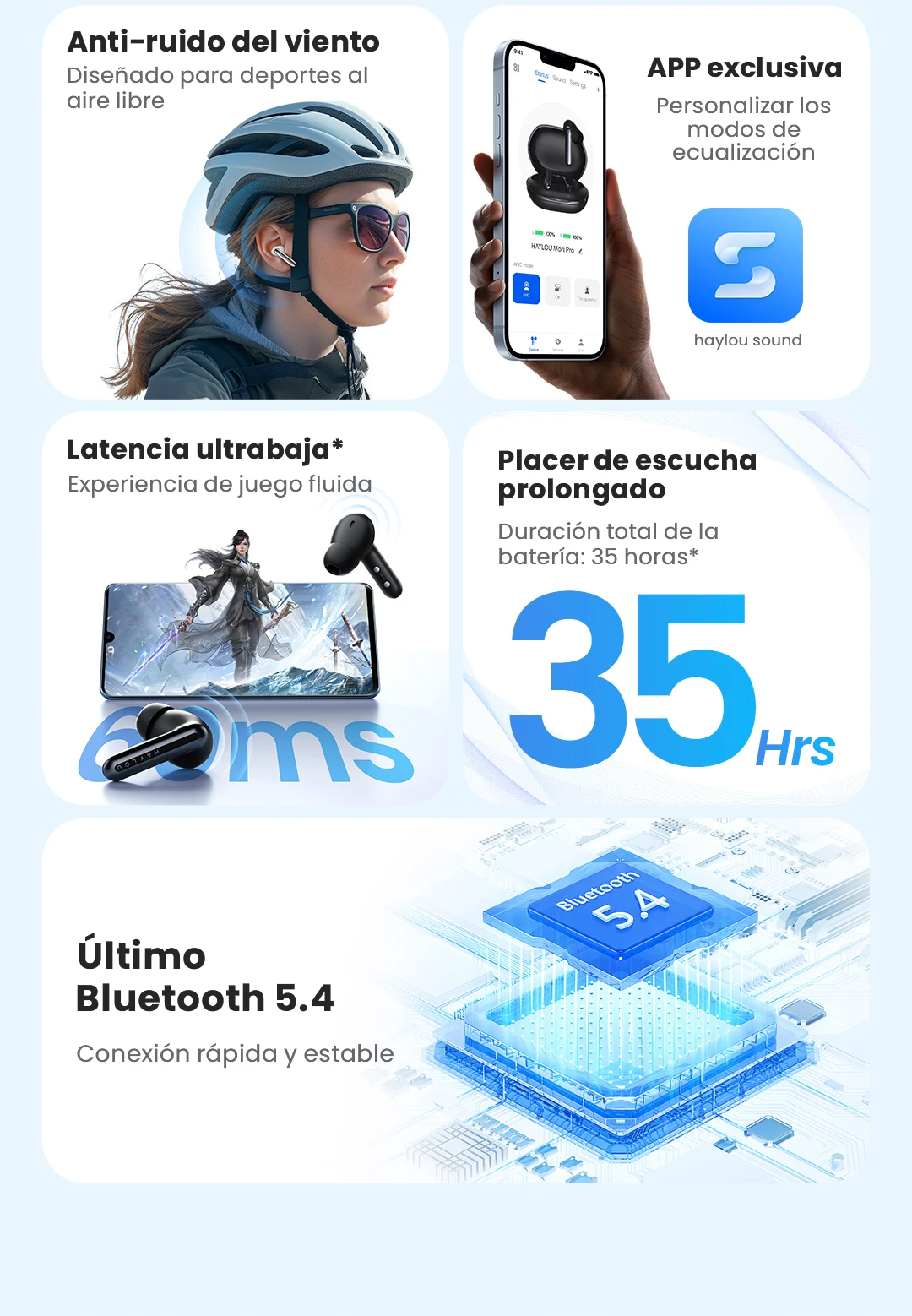 Clasificación de impermeabilidad IPX4?Tres modos de cancelación de ruido?Último Bluetooth 5.4.