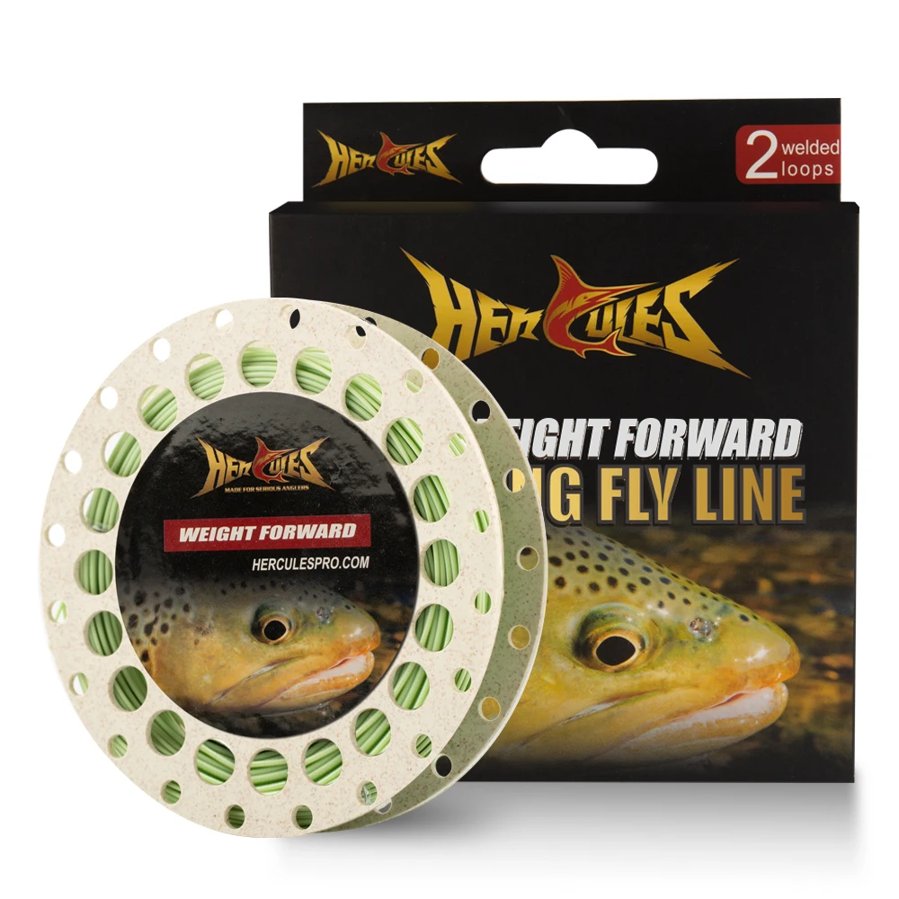 Línea de pesca con mosca HERCULES, peso flotante hacia adelante, línea de mosca de 100 pies con doble