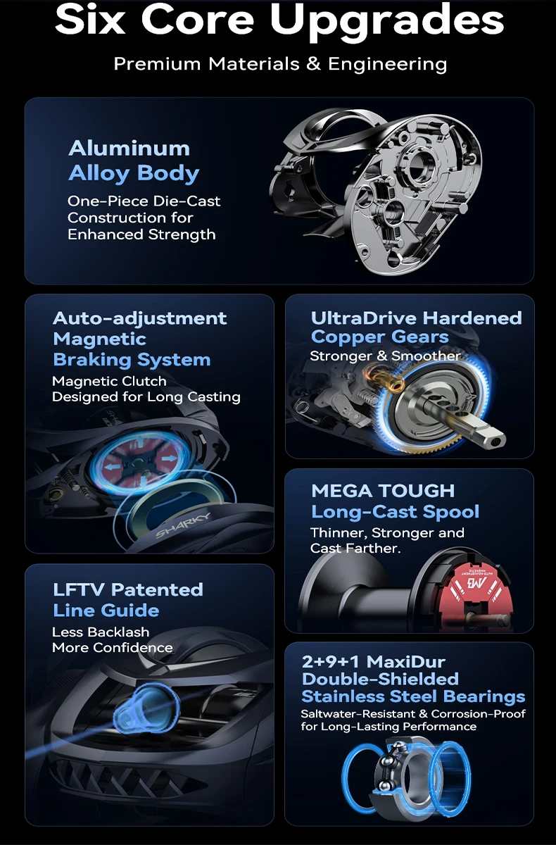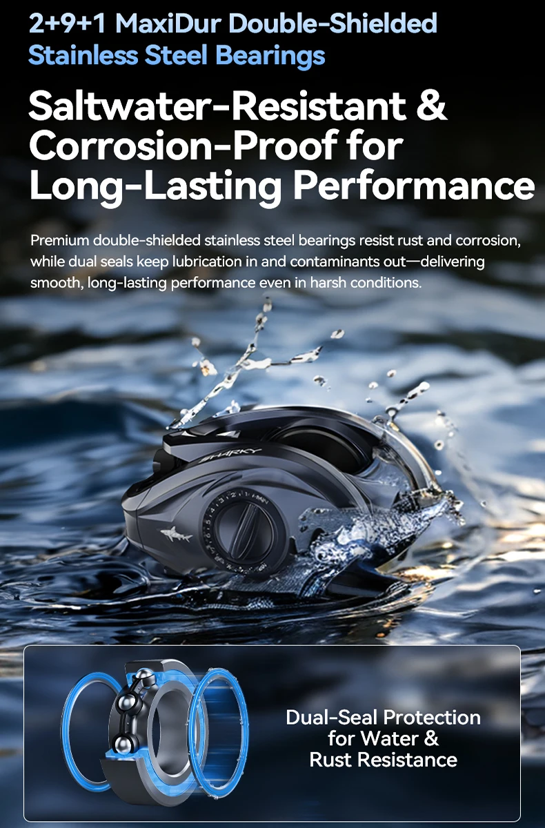 5. En comparación con la generación anterior de carretes Sharky, la resistencia al rendimiento aumentó en un 75%.