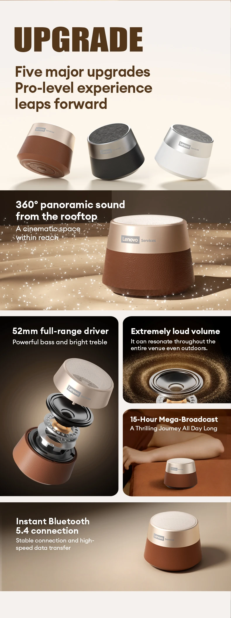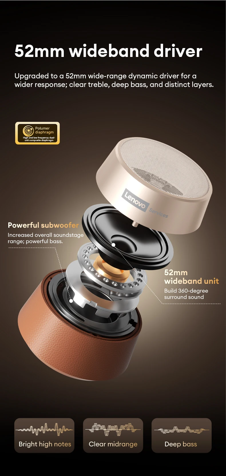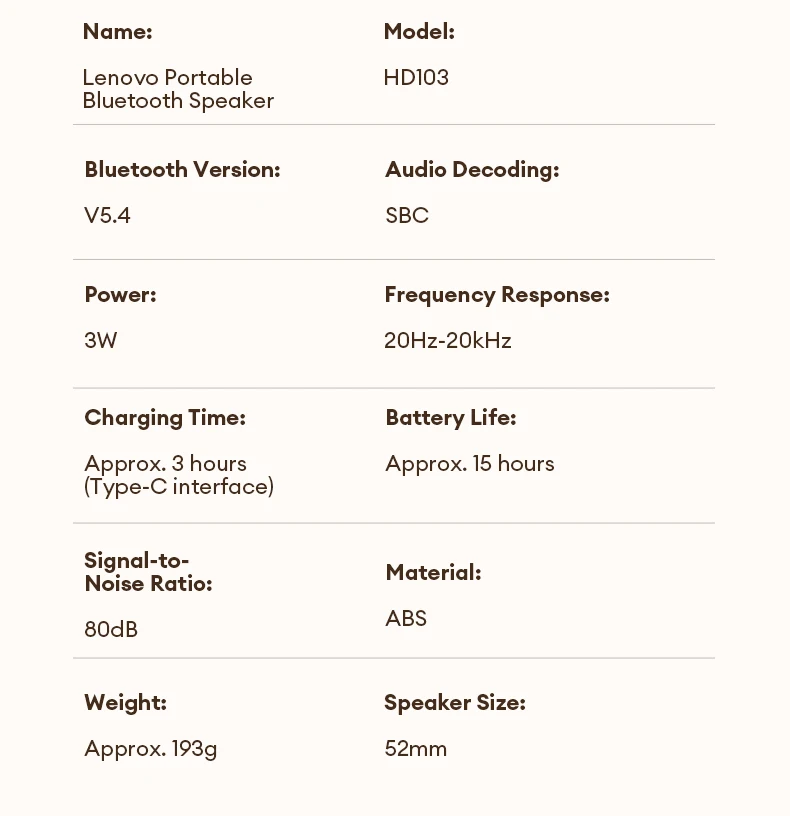 Altavoz Bluetooth 5.4 Lenovo HD103 Portátil Mini Inalámbrico