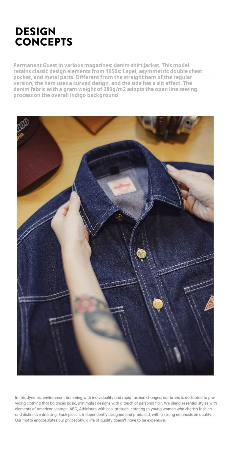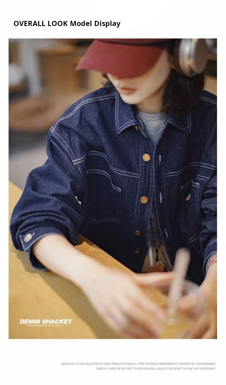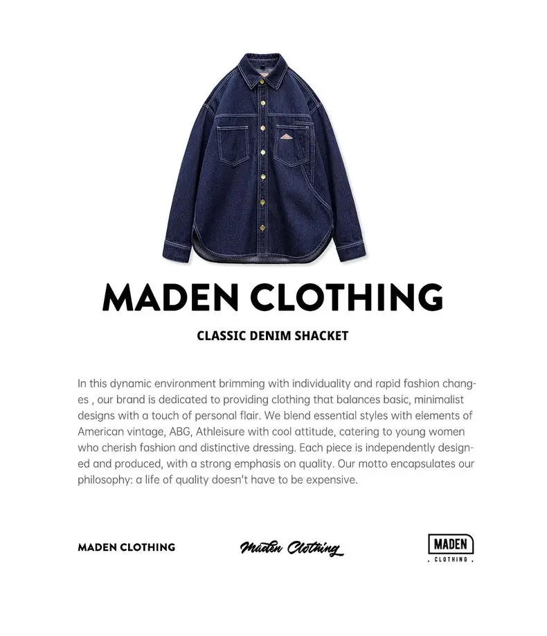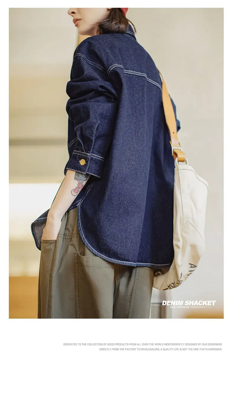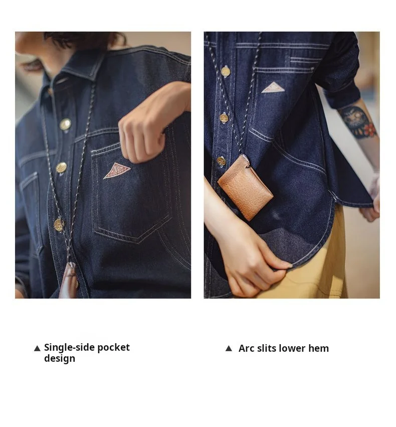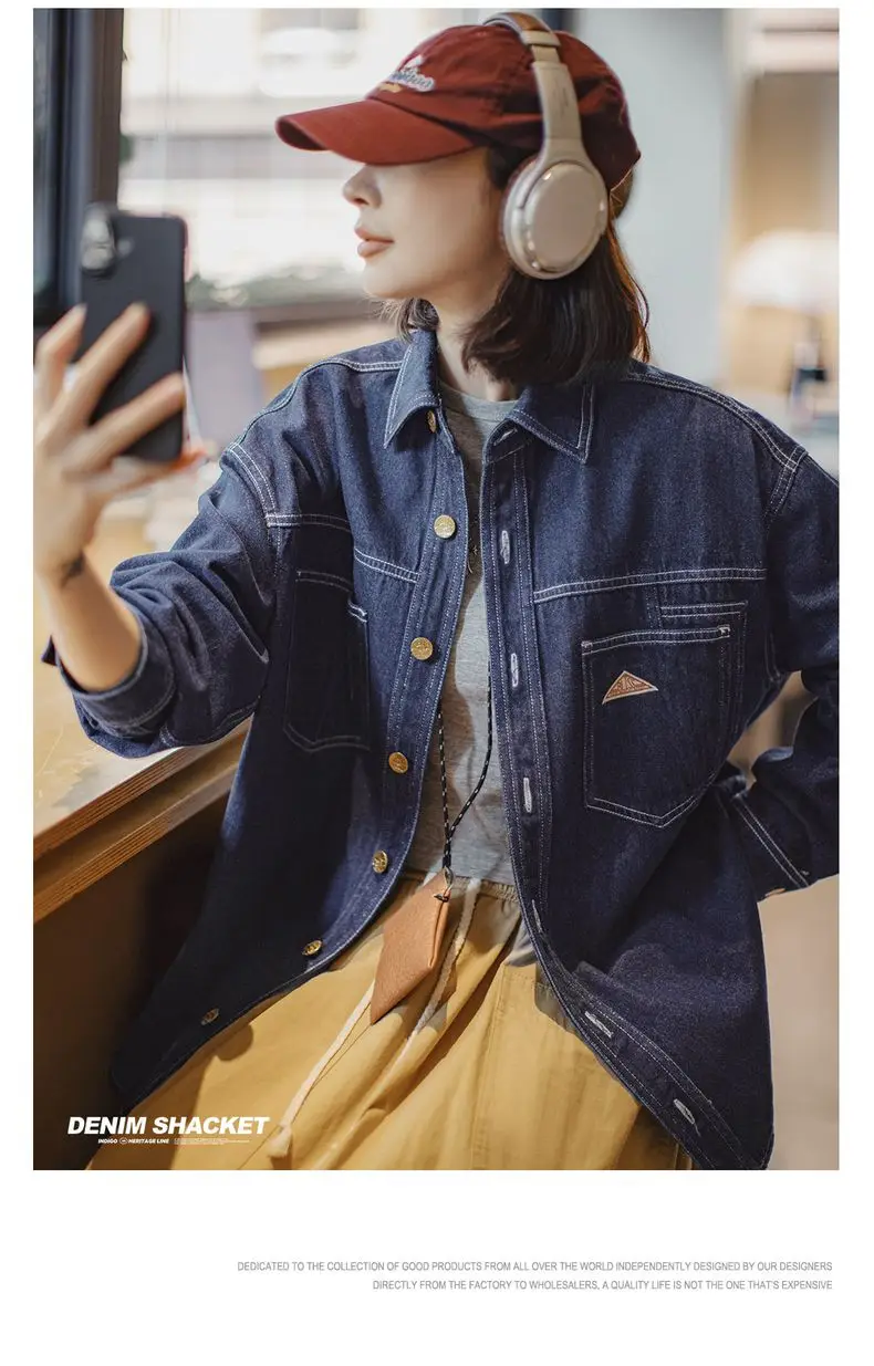 feature 1: Maden Women's Denim Long Sleeve Shirt Vintage Contrast Stitching Loose Fit Shacket for Spring and Fall Casual Single-breasted Commuter Blouse