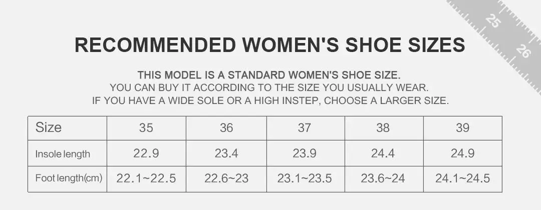 1. Estos zapatos coinciden con la talla europea, compre de acuerdo con la talla europea habitual.