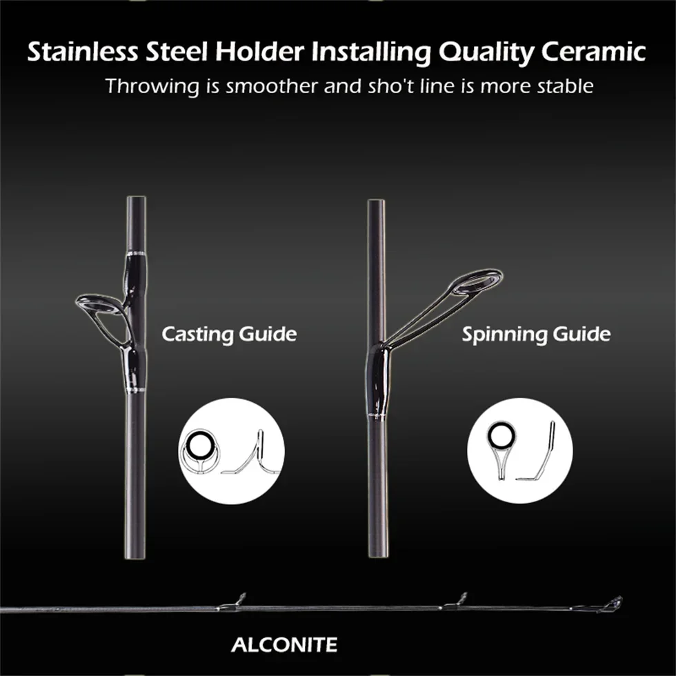 Punta de carbono: esta varilla está equipada con punta sólida, 4 secciones, 1,8 m es punta UL, acción rápida, el peso del señuelo es de 0,8-7 g y una aplicabilidad más amplia.