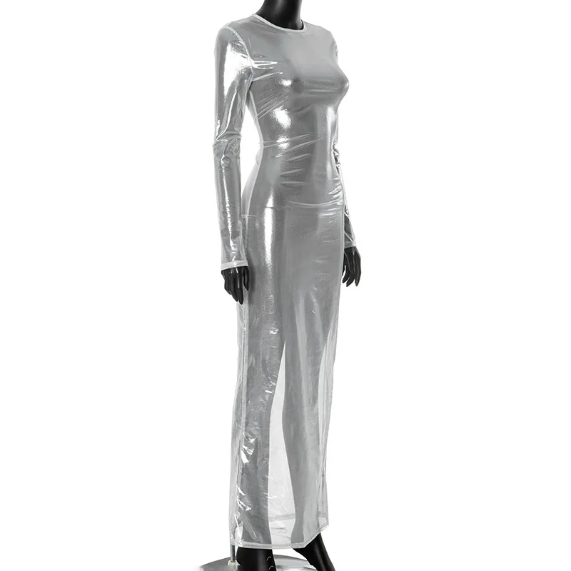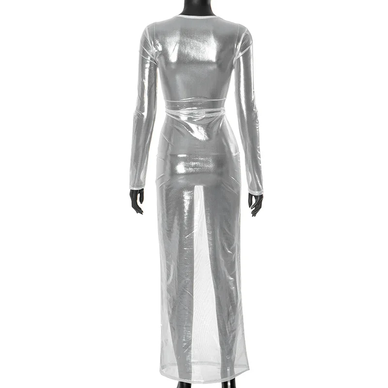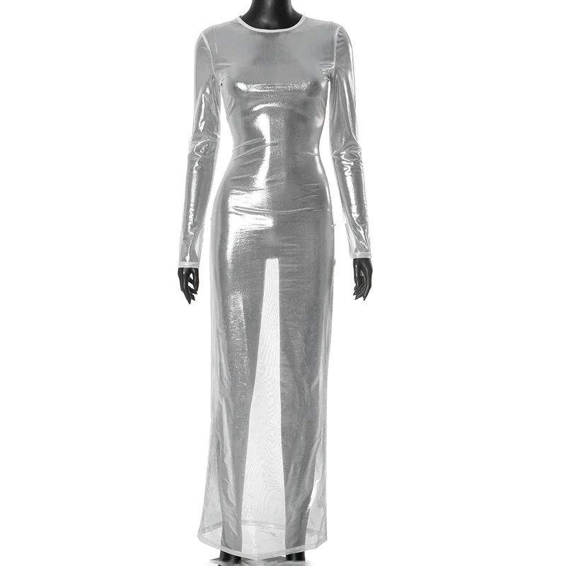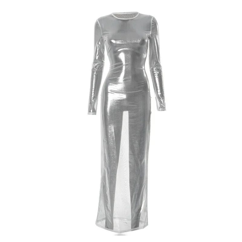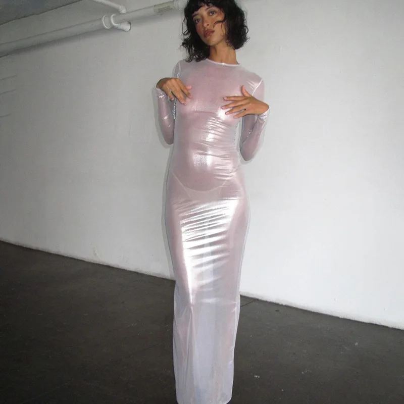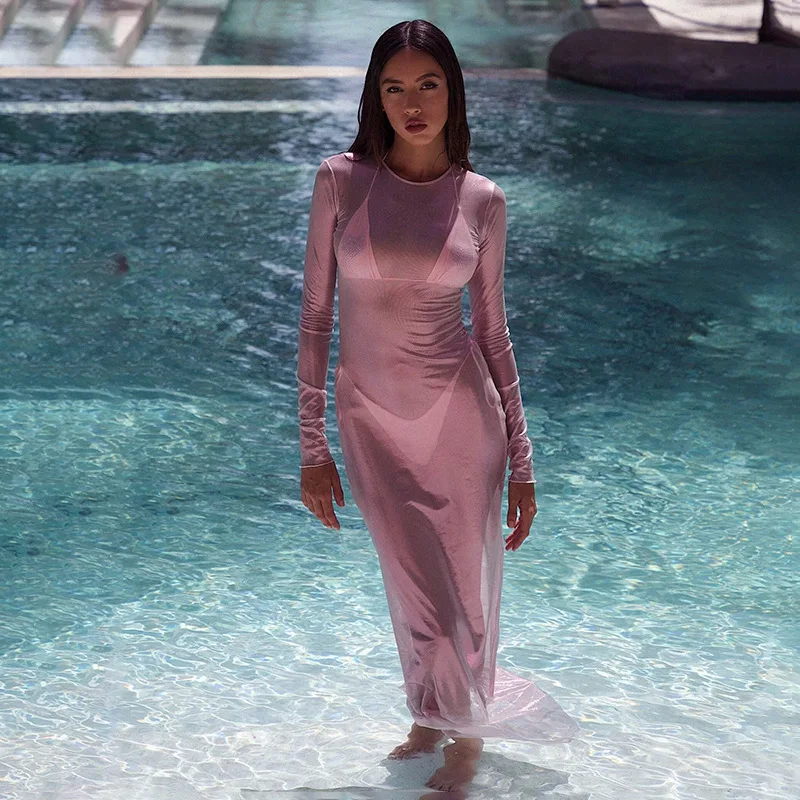 Vestidos largos transparentes de malla para Mujer, Vestidos De playa De manga larga, Vestidos De Mujer ajustados De una pieza, trajes Rave para Club caliente