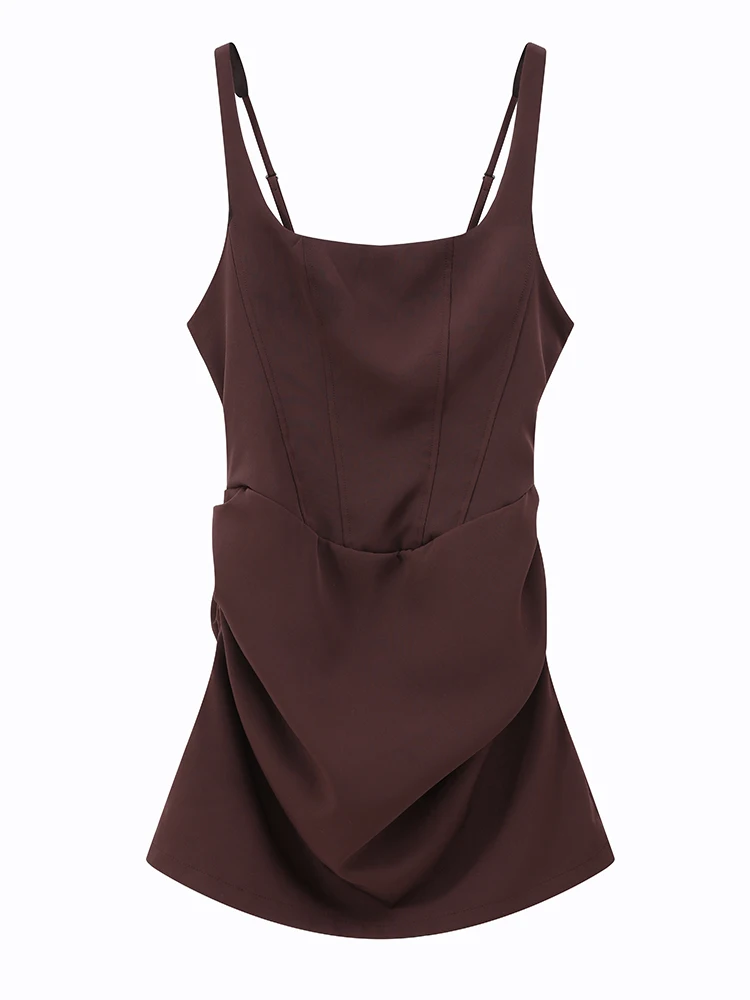 Número de modelo: Women's Sexy Brown Pleated Hem Mini Dress Fashion U-neck Sleeveless B