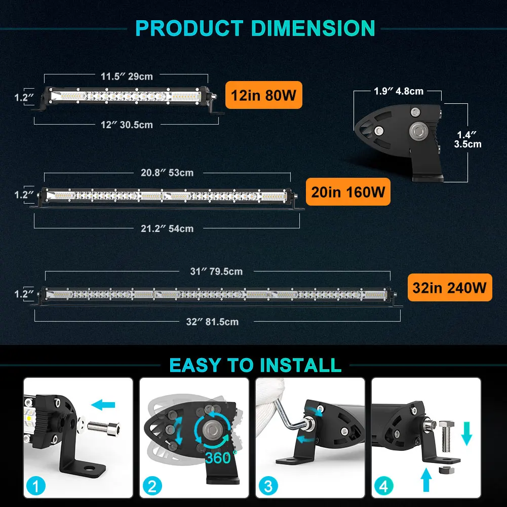 ?NAOEVO La barra LED delgada de una sola fila no necesita ser muy grande ni áspera.