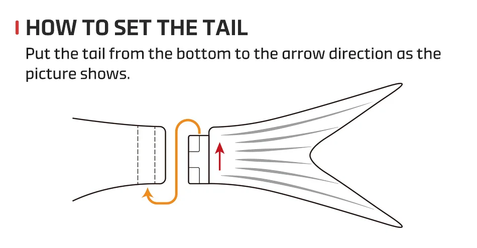 Coloque la cola desde abajo hasta la dirección de la flecha como muestra la imagen.