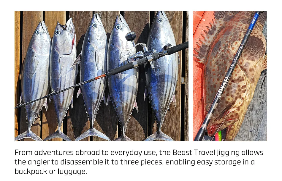 Desde aventuras en el extranjero hasta el uso diario, el Beast Travel Jigging permite al pescador desmontarlo en tres piezas, lo que permite guardarlo fácilmente en una mochila o equipaje.