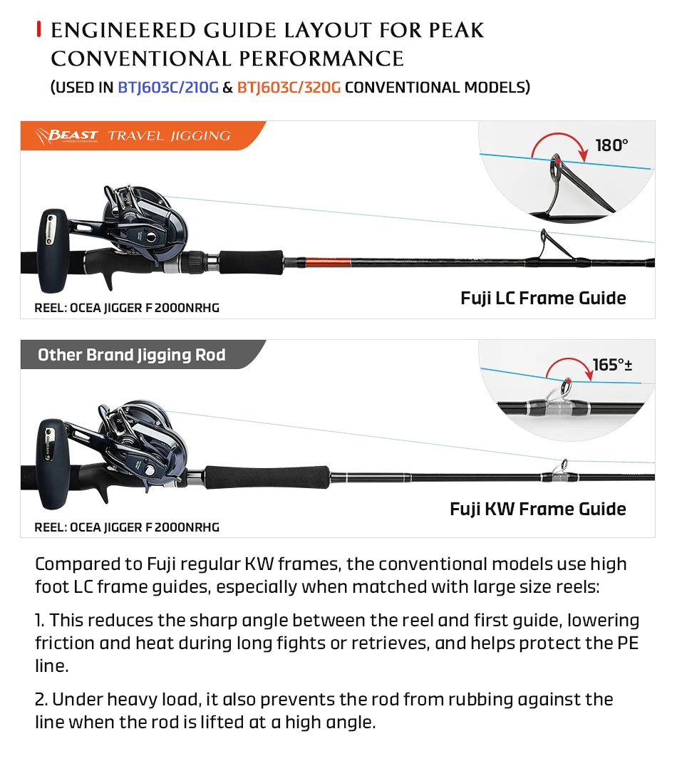 La sensación de ligereza de manipulación que se carga como las características comunes de la serie Beast Travel Jigging le permiten manejar jig largos de forma natural en horizontal o jerk jig de forma agresiva en vertical.