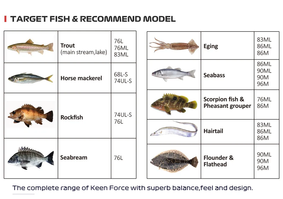 Target fish1: Trout; Eging; Horse mackerel; Seabass; Rockfish;