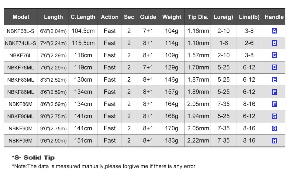 Lure weight: 1-6g; 2-10g; 6-12g; 5-25g; 7-35g